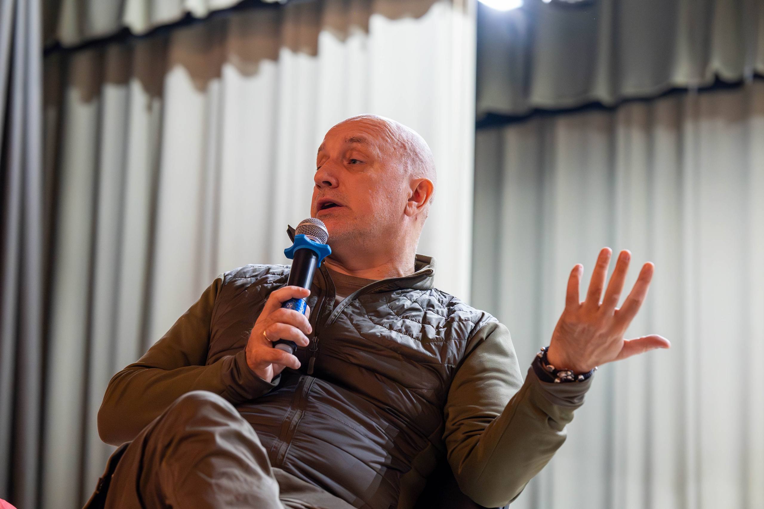 Захар Прилепин встретился со студенческой молодежью города Докучаевска в Центре культуры и досуга им. А.С. Пушкина.