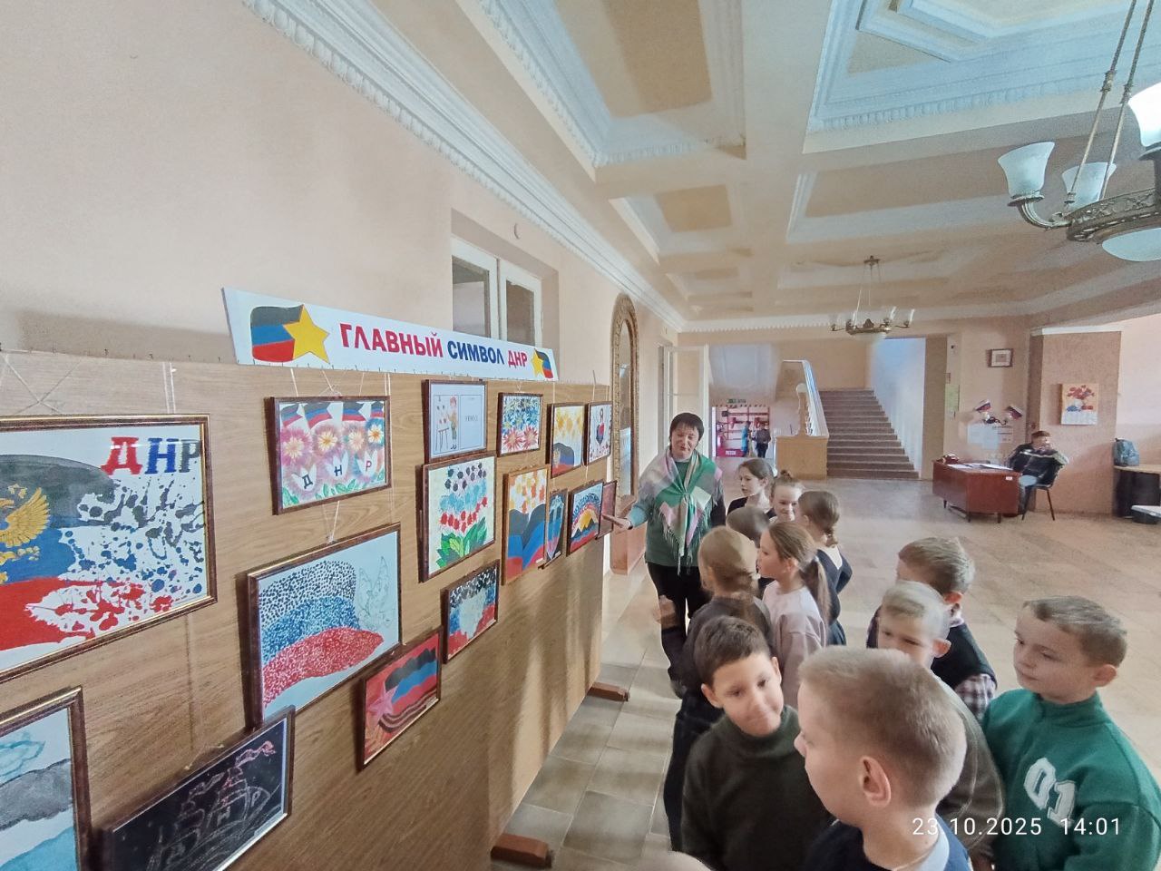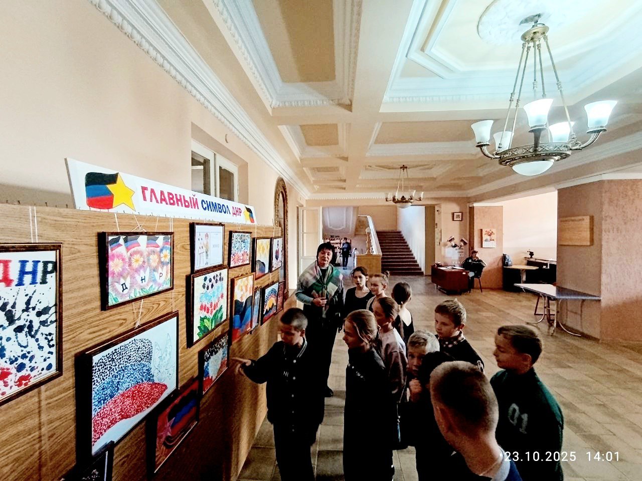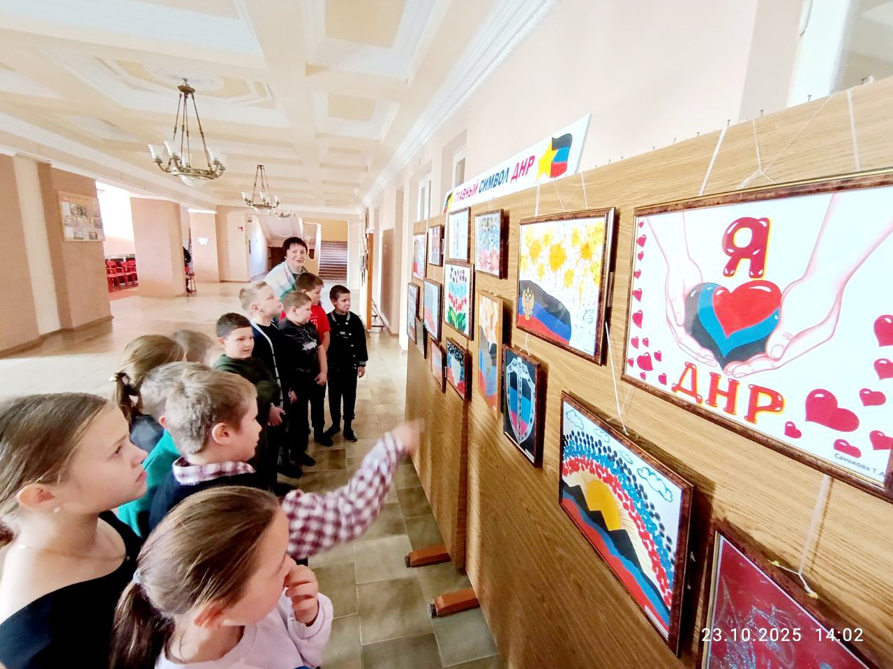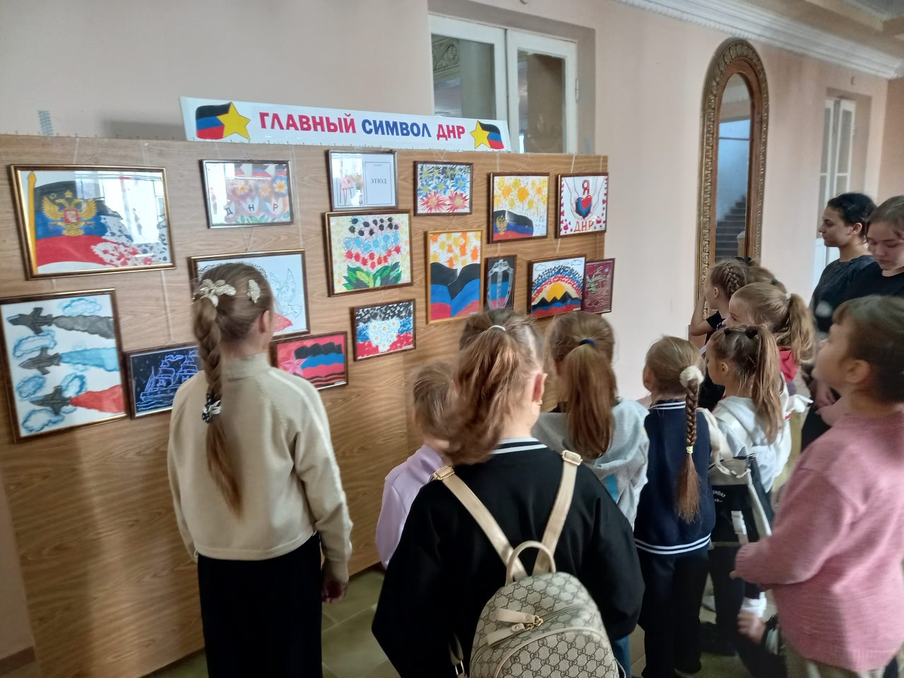 24 октября во Дворце культуры им. Ленина состоялось открытие выставки детских работ «Донбасса главный триколор», посвященной Дню флага ДНР.
