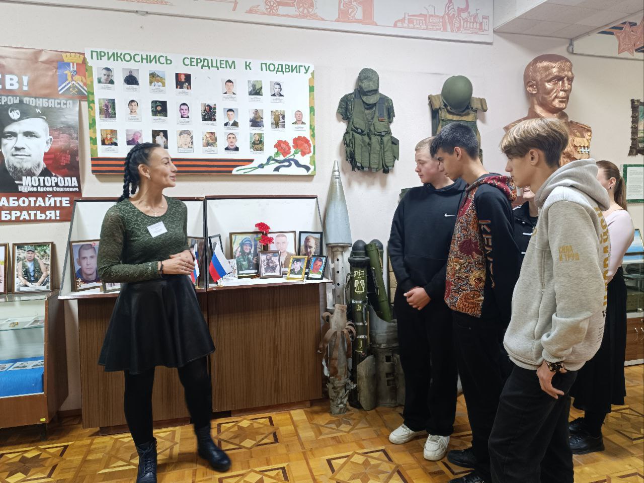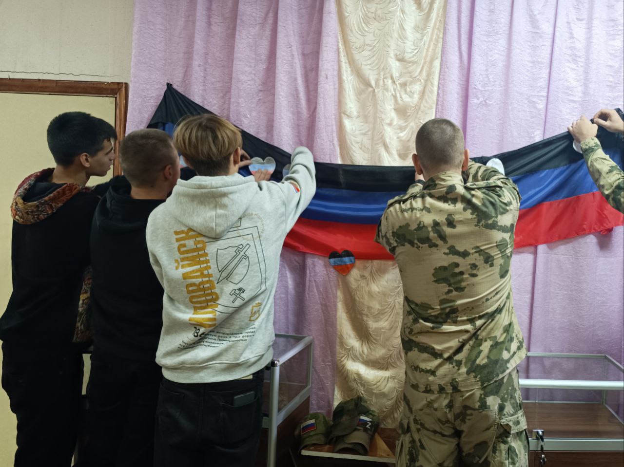 Сегодня, 24 октября 2025 года, ко Дню Государственного флага Донецкой Народной Республики, в МБУ «Музей истории городского округа Иловайск» прошла встреча участников СВО с учащимися СШ №12 имени М. Толстых, совместно с администрацией городского округа Иловайск.