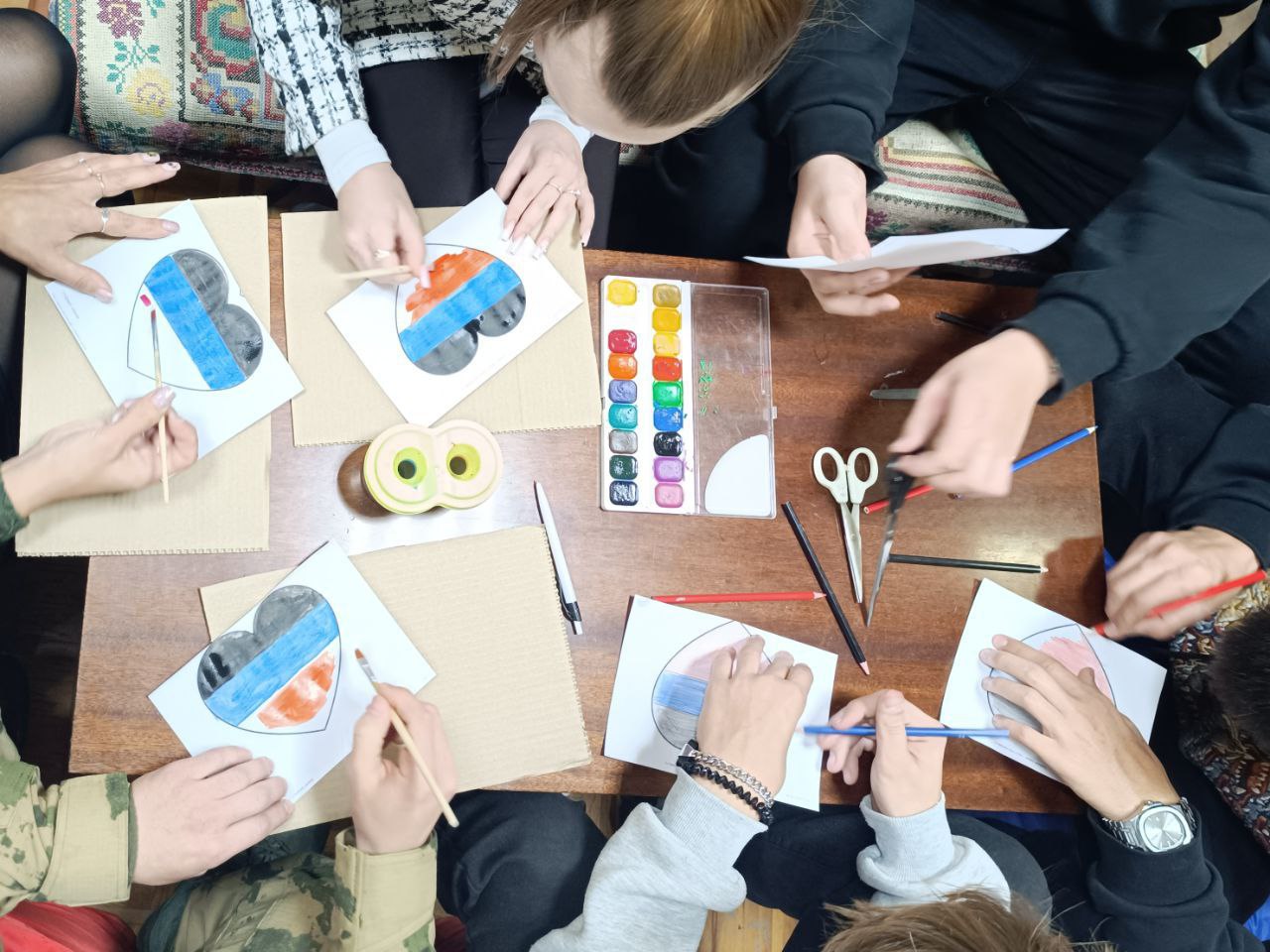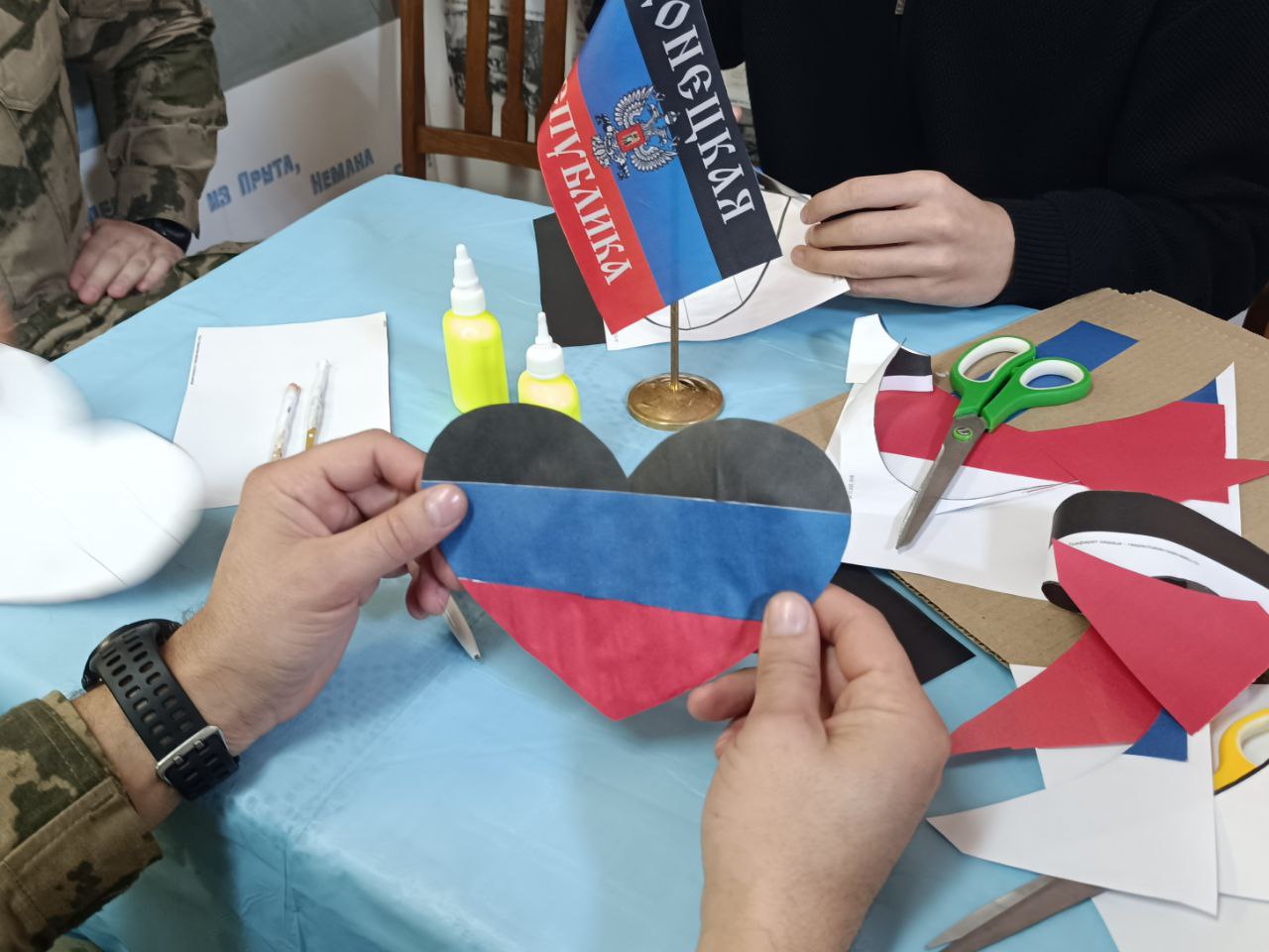 Для военнослужащих, ребята совместно с музеем, подготовили мастер класс «И гордо реет триколор» по изготовлению открытки в цвете флага ДНР. Все присутствующие получили ряд положительных эмоций, новые знания и отличное настроение.