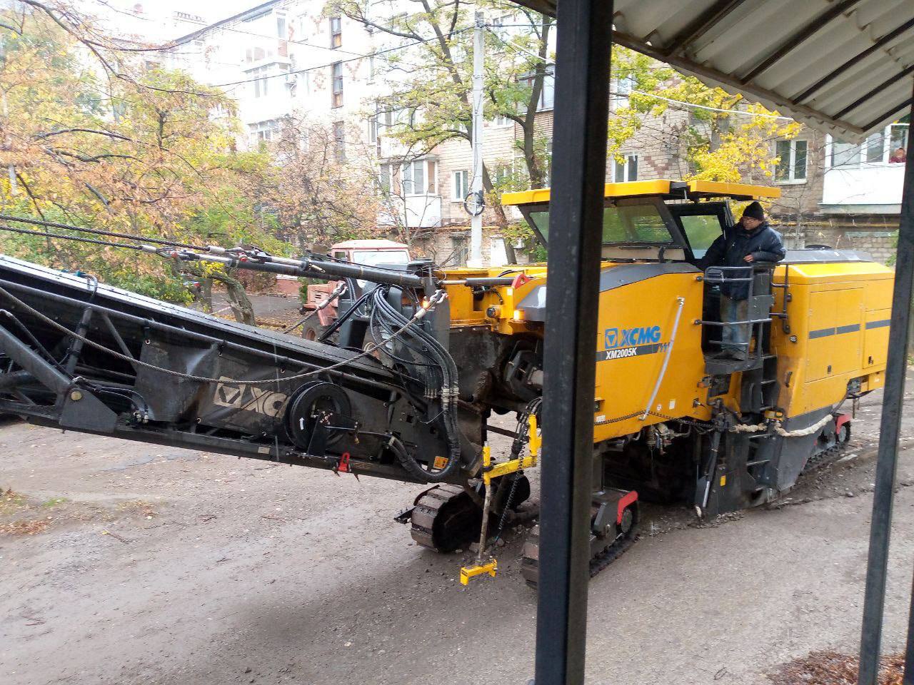 Производилось фрезерование асфальтобетонного покрытия по ул. Политехническая и пр. Победы.