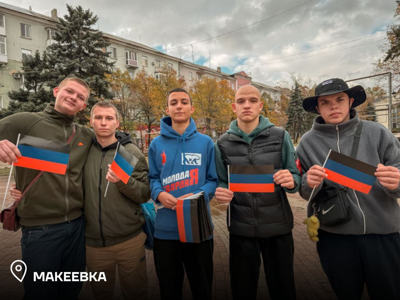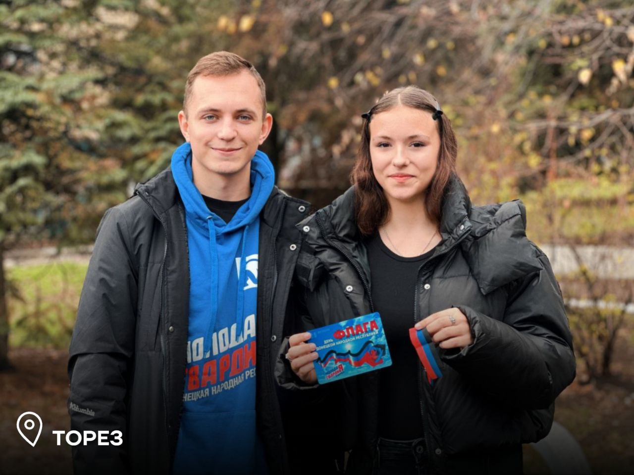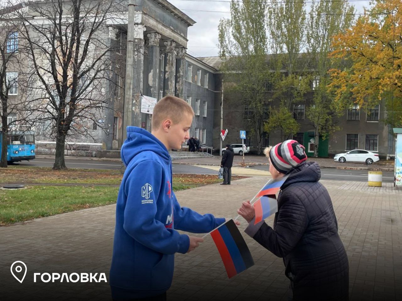 К празднику во всех городах нашего региона молодёжь раздала черно-сине-красные флажки.