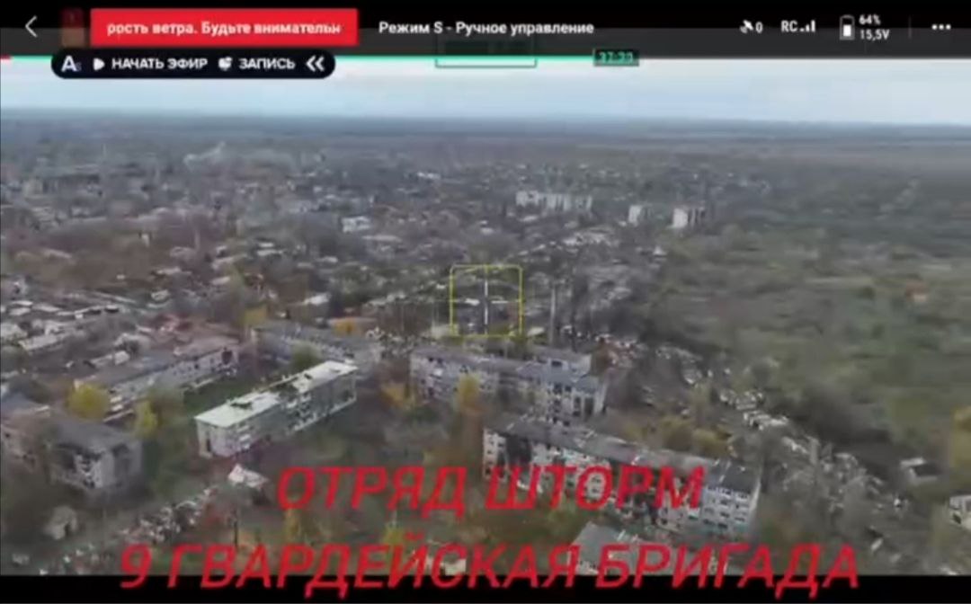 Бойцы отряда Шторм 9-ой бригады демонстрируют флаг подразделения на юго-восточной окраине Родинского.