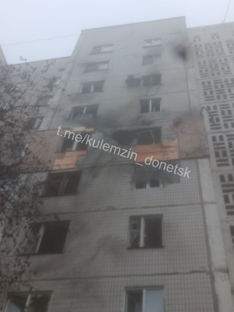 Последствия обстрела Буденновского района. По предварительной информации, в результате удара пострадало 30 окон и фасад дома.