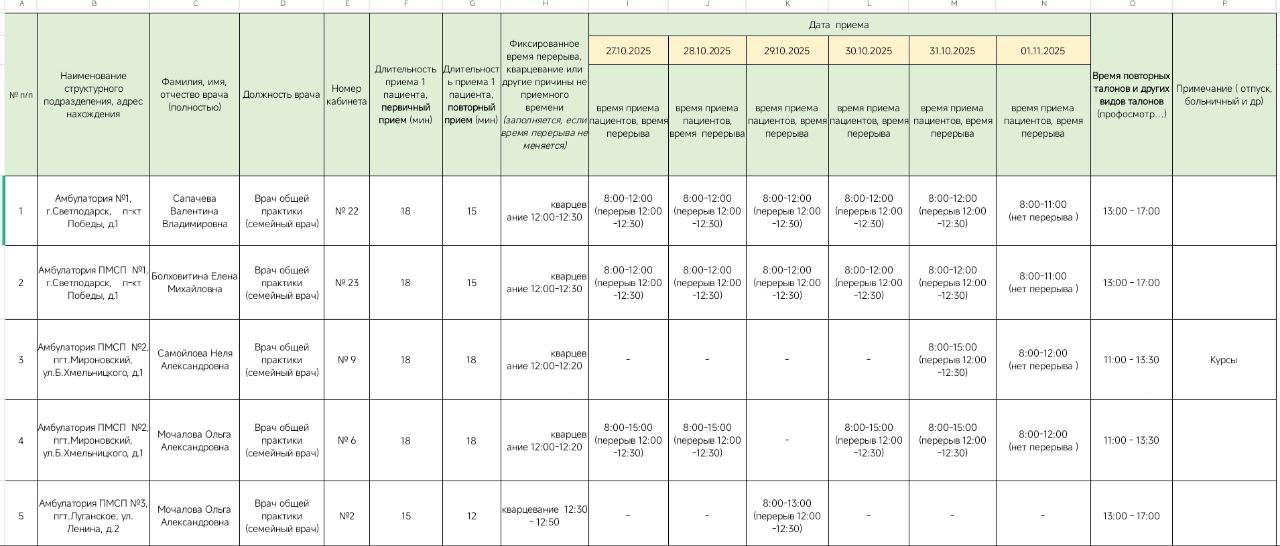 График приёма врачами