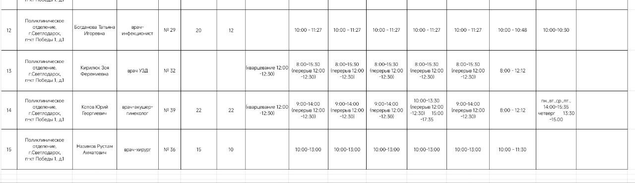 Внимание. График приёма врачами