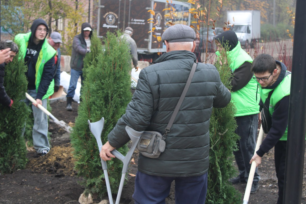 «Насаждения были переданы совхозом декоративных культур и одиннадцатиклассниками лицея № 11 города Армавир в преддверии Дня народного единства. Всего в Горловку было передано порядка 50 кустарников можжевельника и 11 туй», – поделился подробностями мероприятия администратор группы «Стоим Zа Донбасс! АрмаVир» Денис Куренин.