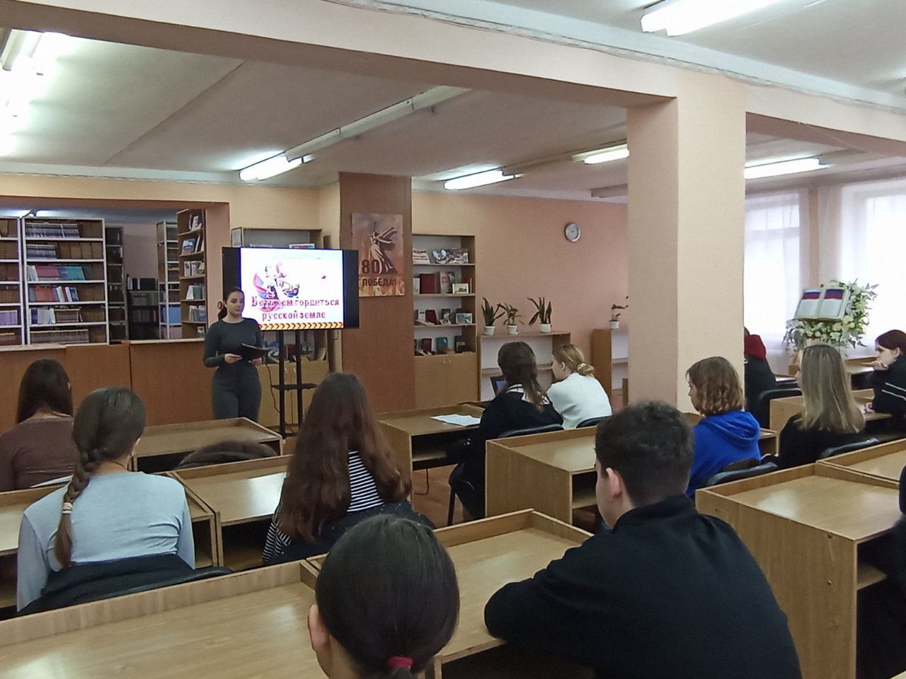 К этой дате Центральная городская библиотека подготовиладля студентов Енакиевского техникума экономики и менеджменталитературно-исторический рассказ «Есть кем гордиться русской земле».