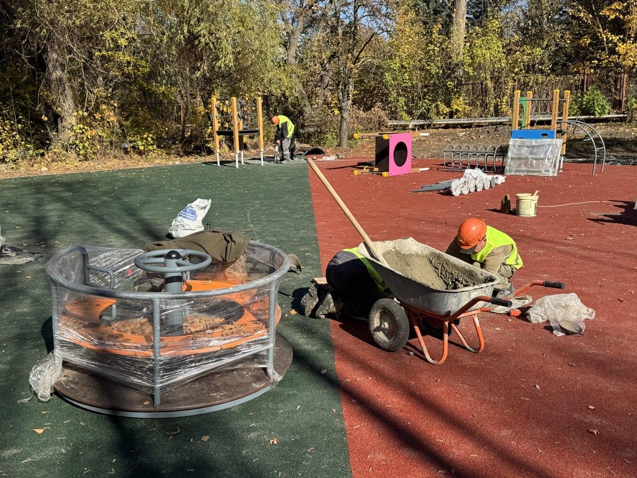 Сейчас рабочие устанавливают игровые комплексы.