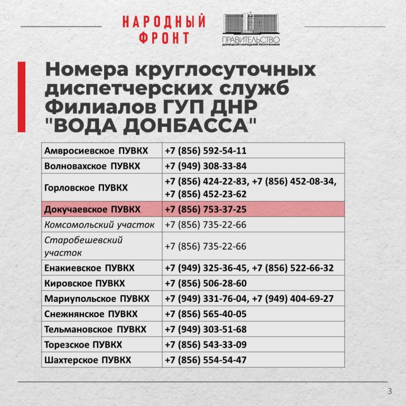 В часто поступают вопросом о месторасположении бочек в районах. Совместно с государственным предприятием "Вода Донбасса" подготовили карточки с номерами телефонов, по которым круглосуточно можно получить актуальную информацию.