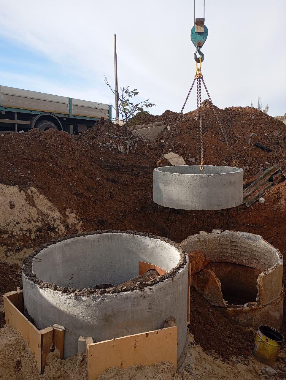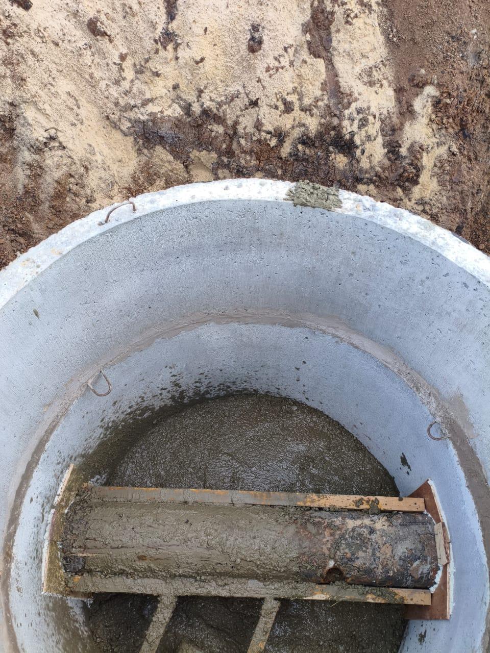Специалисты монтируют железобетонные кольца и заливают конструкции бетоном, в том числе для создания прочных гидрозамков. Для обеспечения долговечности сооружения проводится двухслойная гидроизоляция.