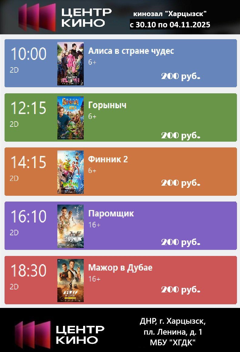 Расписание сеансов в кинотеатрах «Харцызск» и «Трубник» с 30 октября по 04 ноября 2025 года