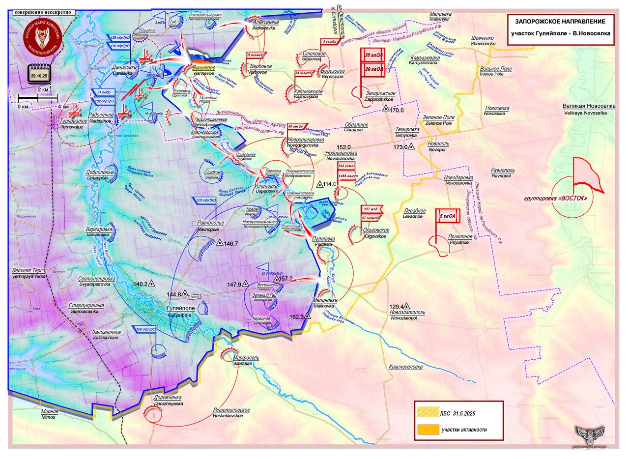 Для выхода к району Даниловка нашим подразделениям необходимо прикрыть правый фланг группировки от угрозы контратак ВСУ по линии Покровское - Даниловка на самом коротком плече маневра противника (10 километров). Вероятно расширение плацдарма на север и выставление заслонов на трассах С041431, Р-85. Затем последует ликвидация транспортного узла Даниловка с выходом к реке Гайчур.