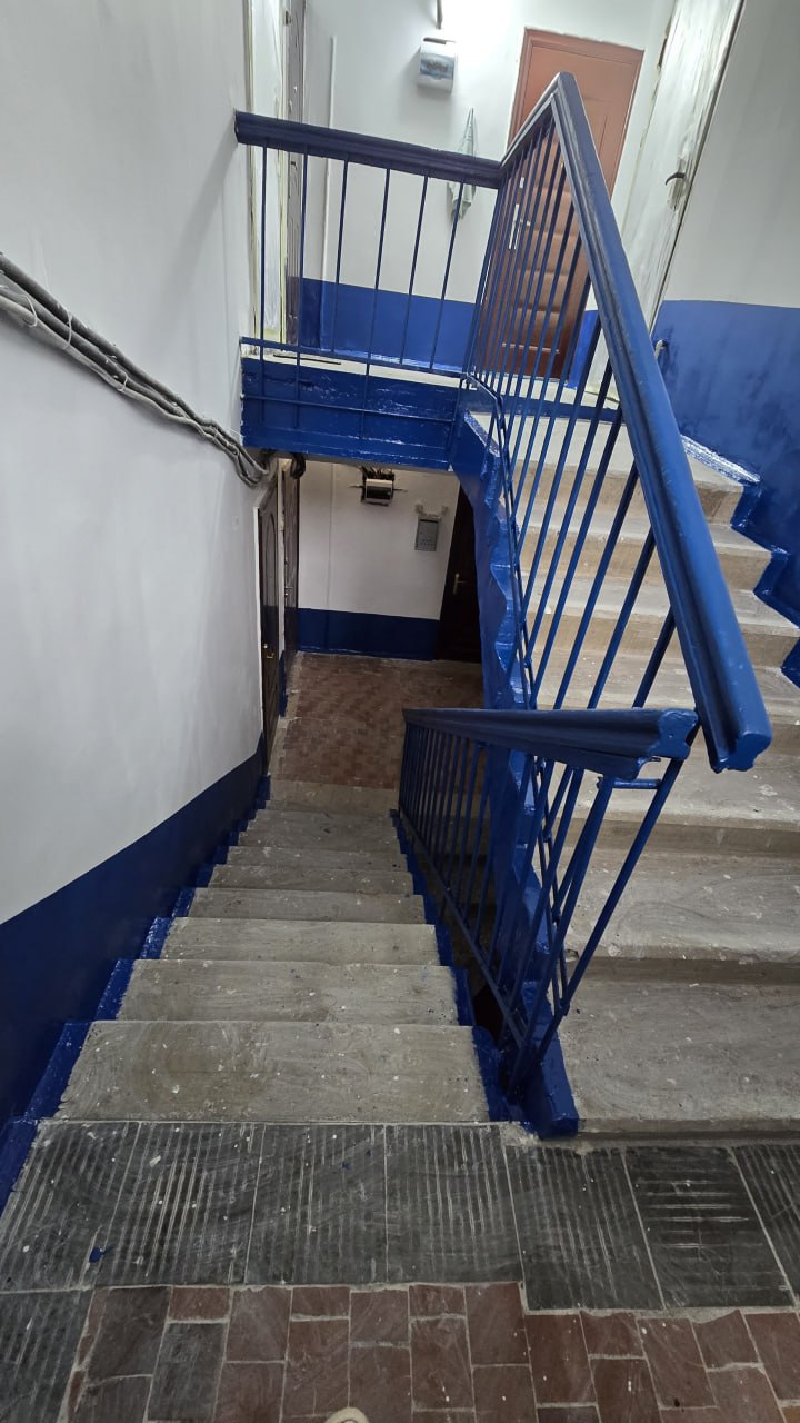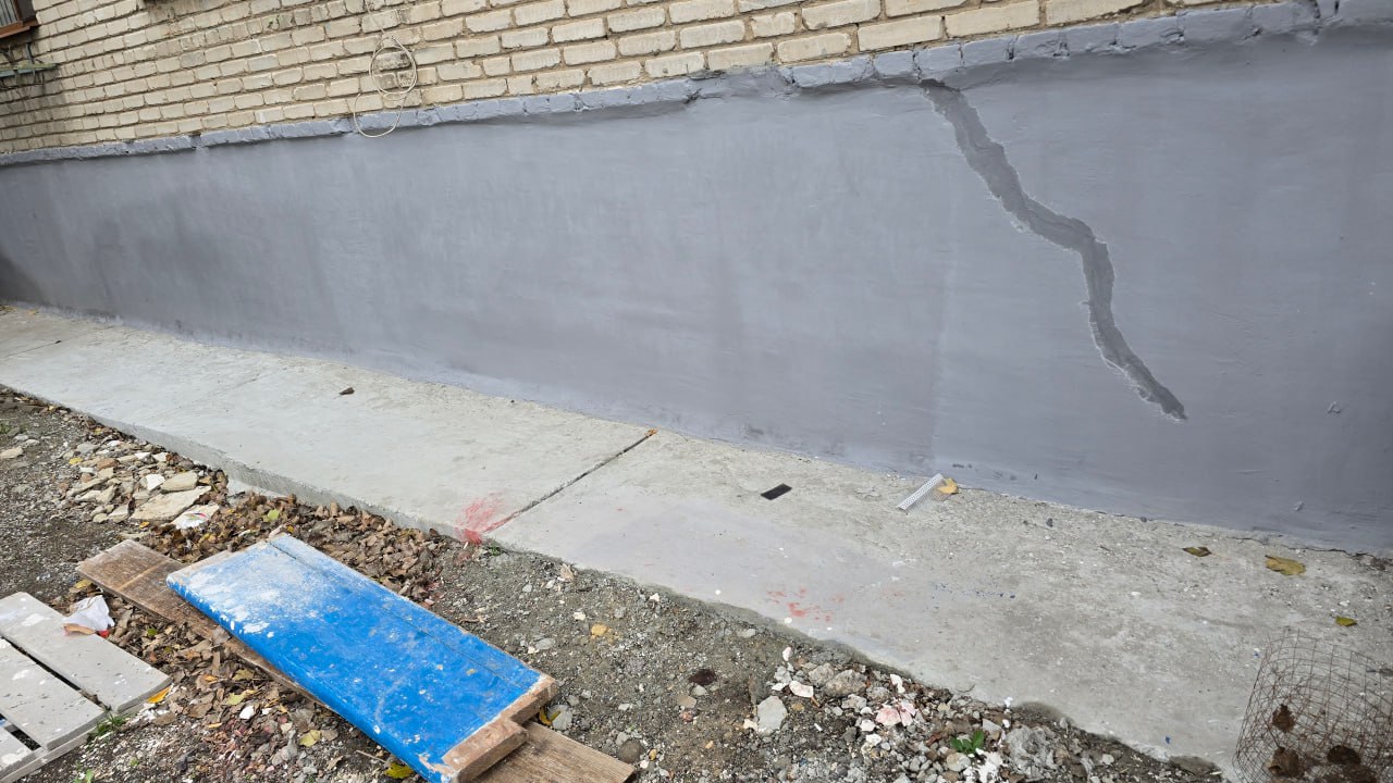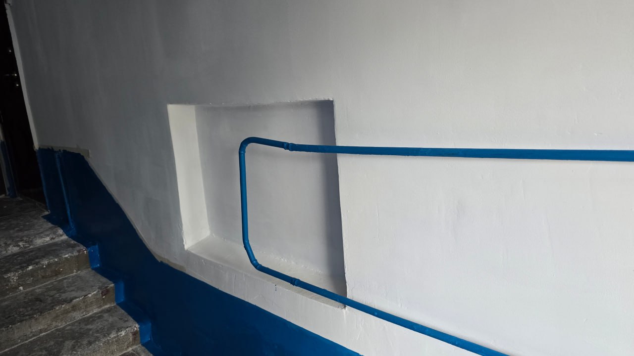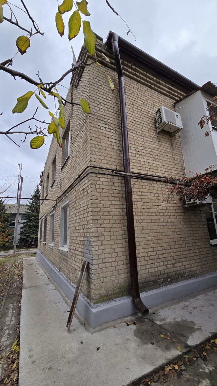 В рамках ремонтных работ произведена замена кровельного покрытия, восстановление отмостки, ремонт цоколя, входных групп, подъездов и порогов.