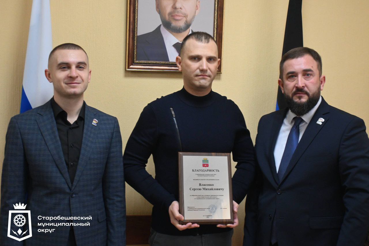 Лицам, внесшим вклад в развитие округа, были вручены благодарности. Выражена глубокая признательность за их активную гражданскую позицию, самоотверженный труд и стремление к улучшению качества жизни в Старобешевском муниципальном округе.