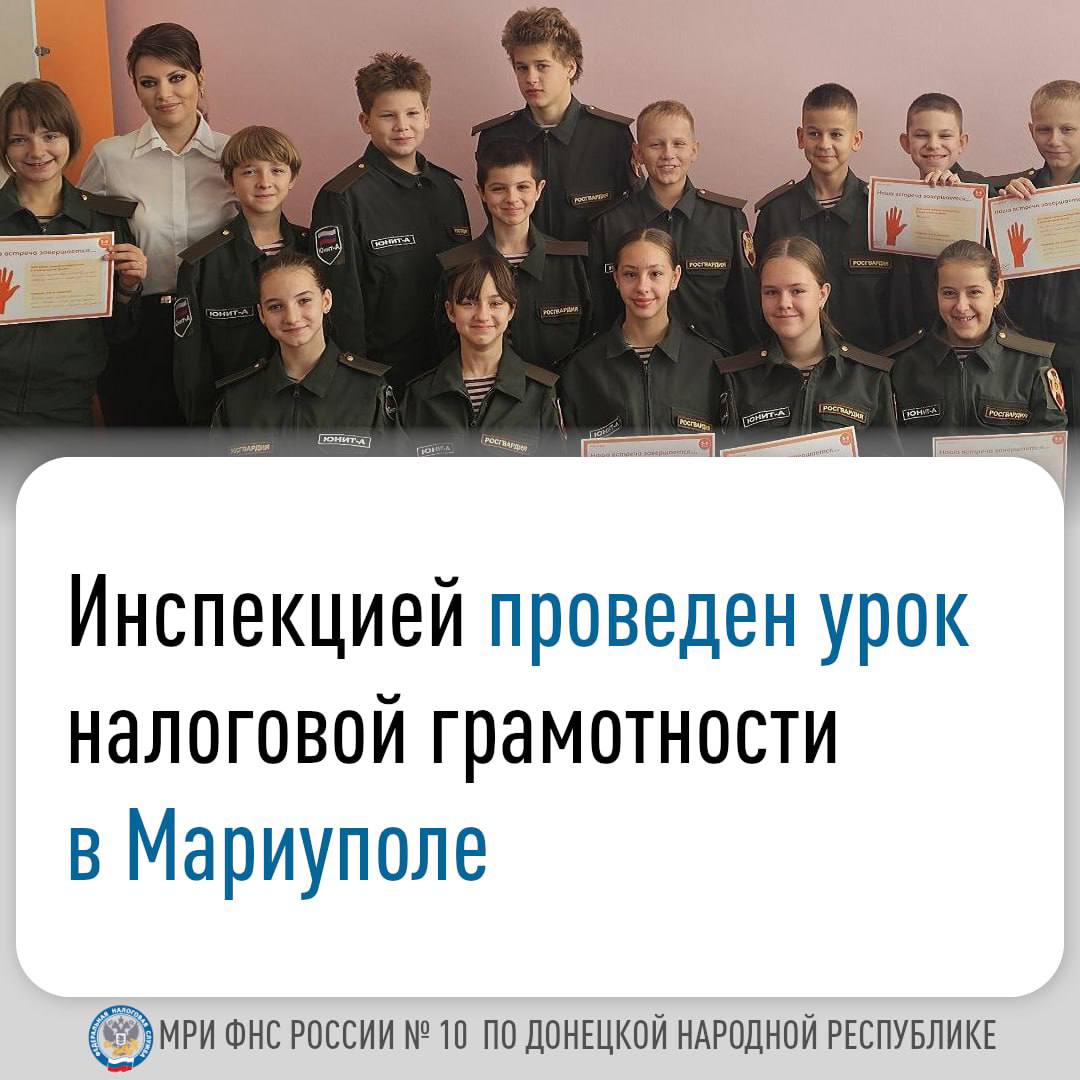В рамках Всероссийского просветительского проекта «юНГа» сотрудники Межрайонной ИФНС России № 10 по ДНР провели урок налоговой грамотности среди учеников ГБОУ «Средняя школа № 26 в городском округе Мариуполь».
