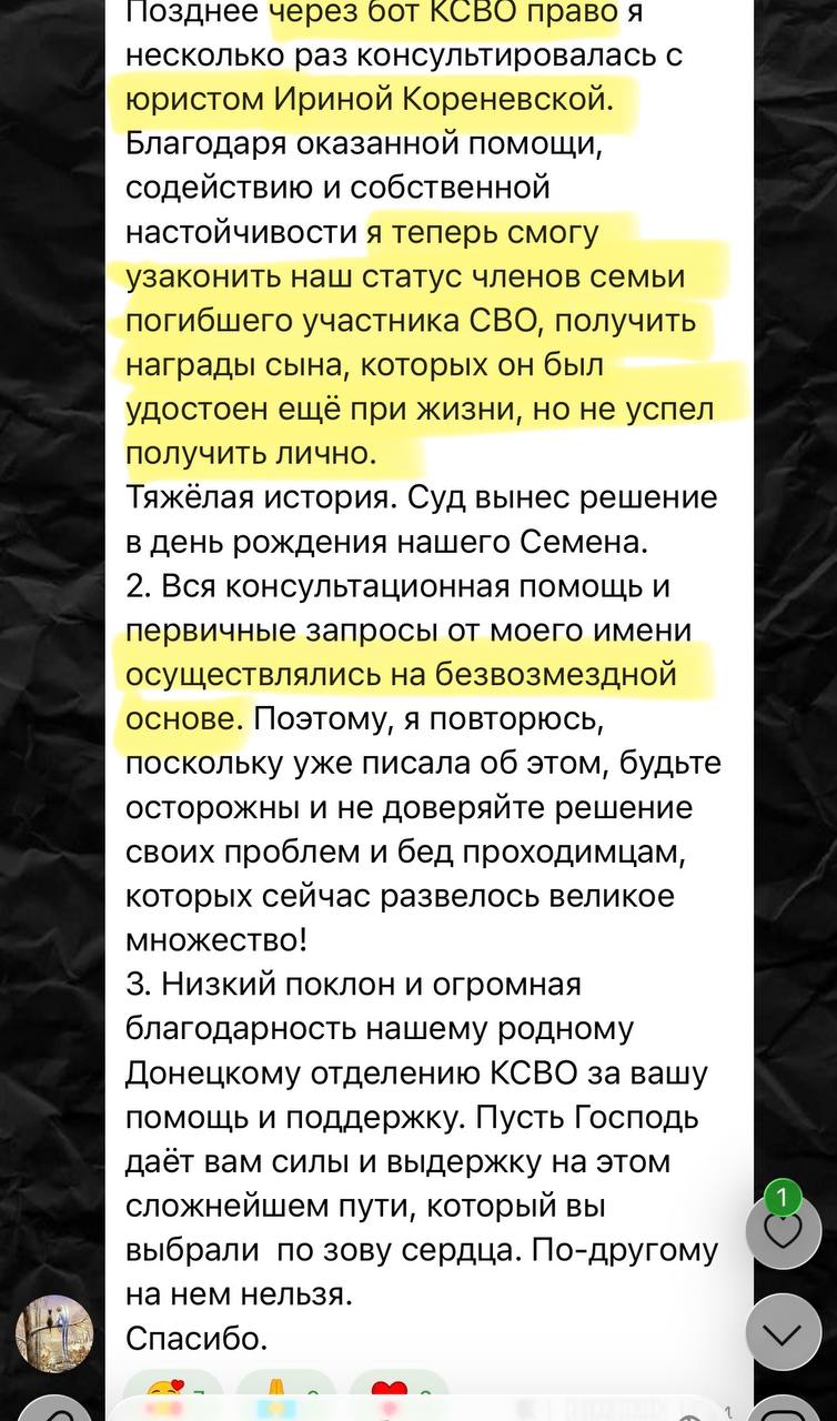 Те, кто представляется юристами КСВО и просяткакую-либо оплату за услуги — мошенники, которые наживаются на чужом горе.