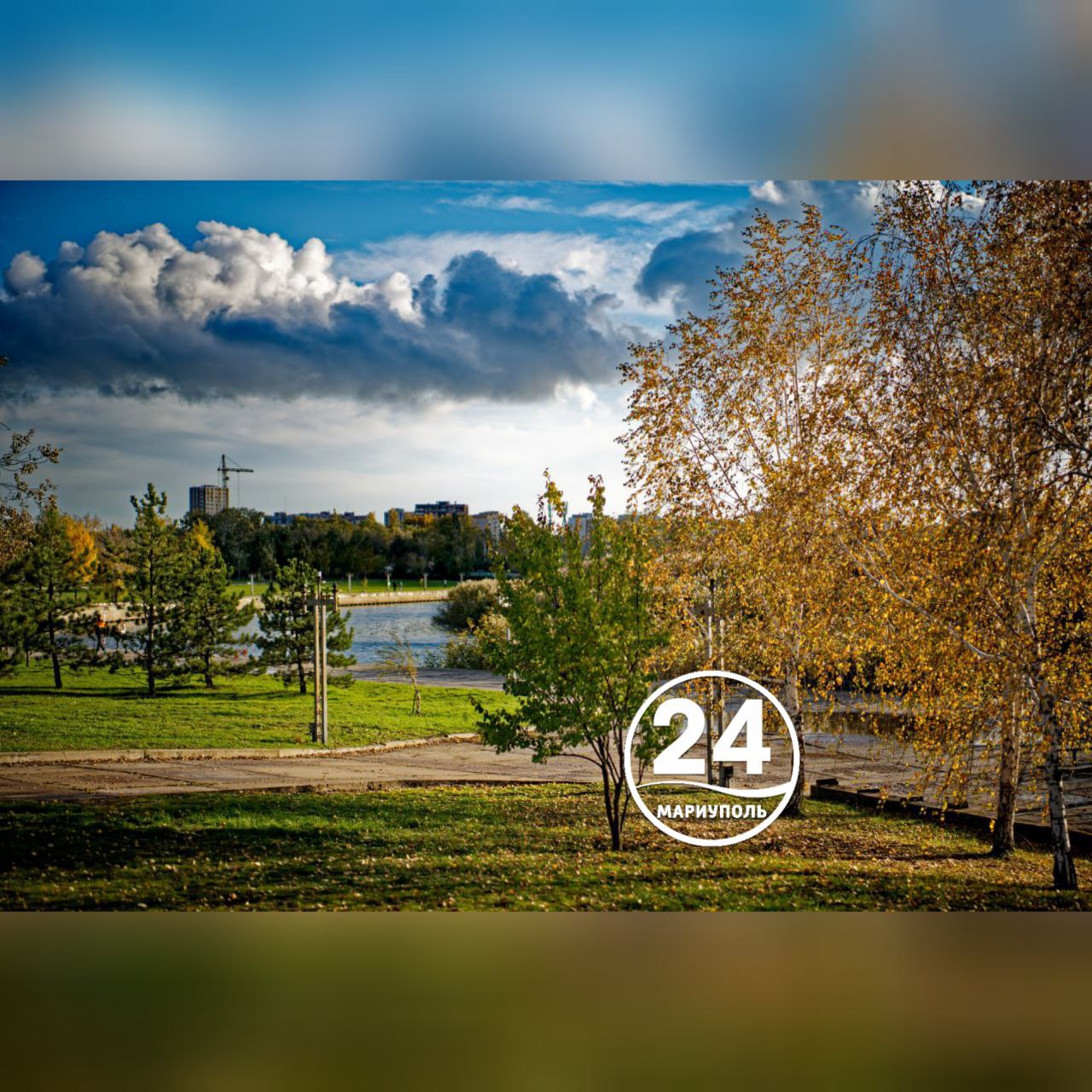 Живописная красота осеннего осеннего пейзажа возле мариупольского парка им. Гурова