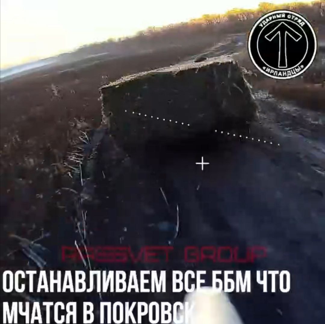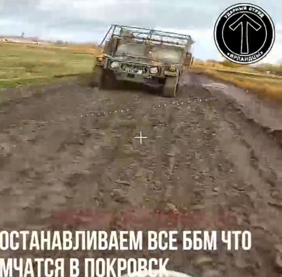 Дроноводы отряда Ирландцы уничтожают автомобили ВСУ, мчавшиеся в Покровск, а также роботизированные платформы и град.
