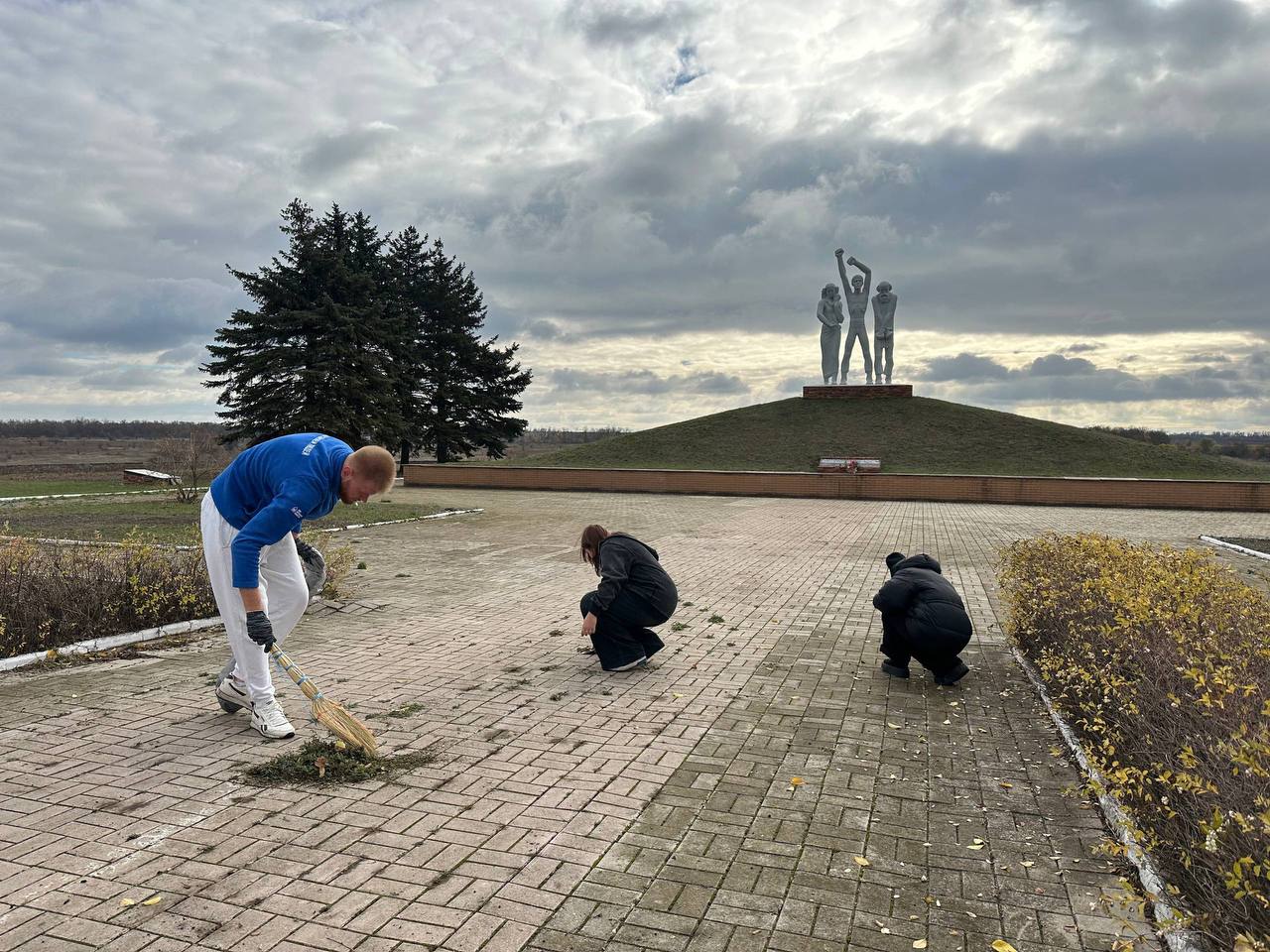 Ребята приняли участие в городском субботнике и убрали территорию городского ставка и памятника «Братская могила мирных граждан и партизан» в с. Третьяки.