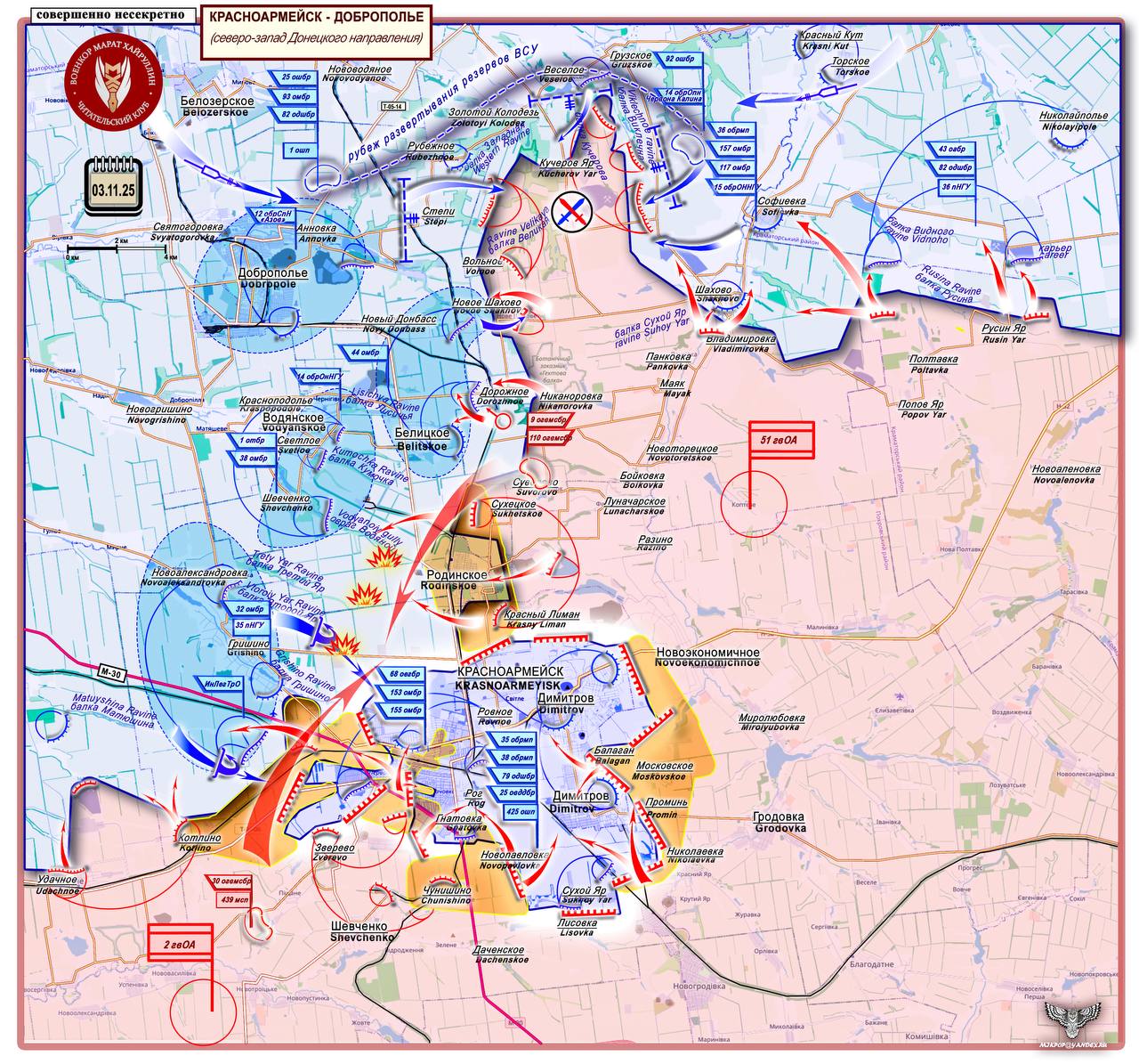 Подразделения 5-й мотострелковой бригады 51-й армии освободили 24 здания в северной, восточной и юго-восточной частях населенного пункта Димитров ДНР. Продолжается расширение зоны контроля и сжатие кольца окружения группировки врага с востока.
