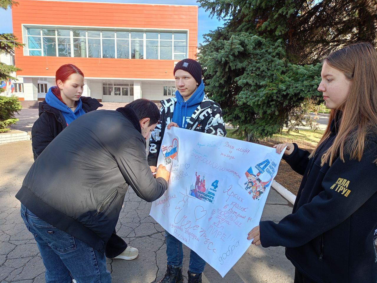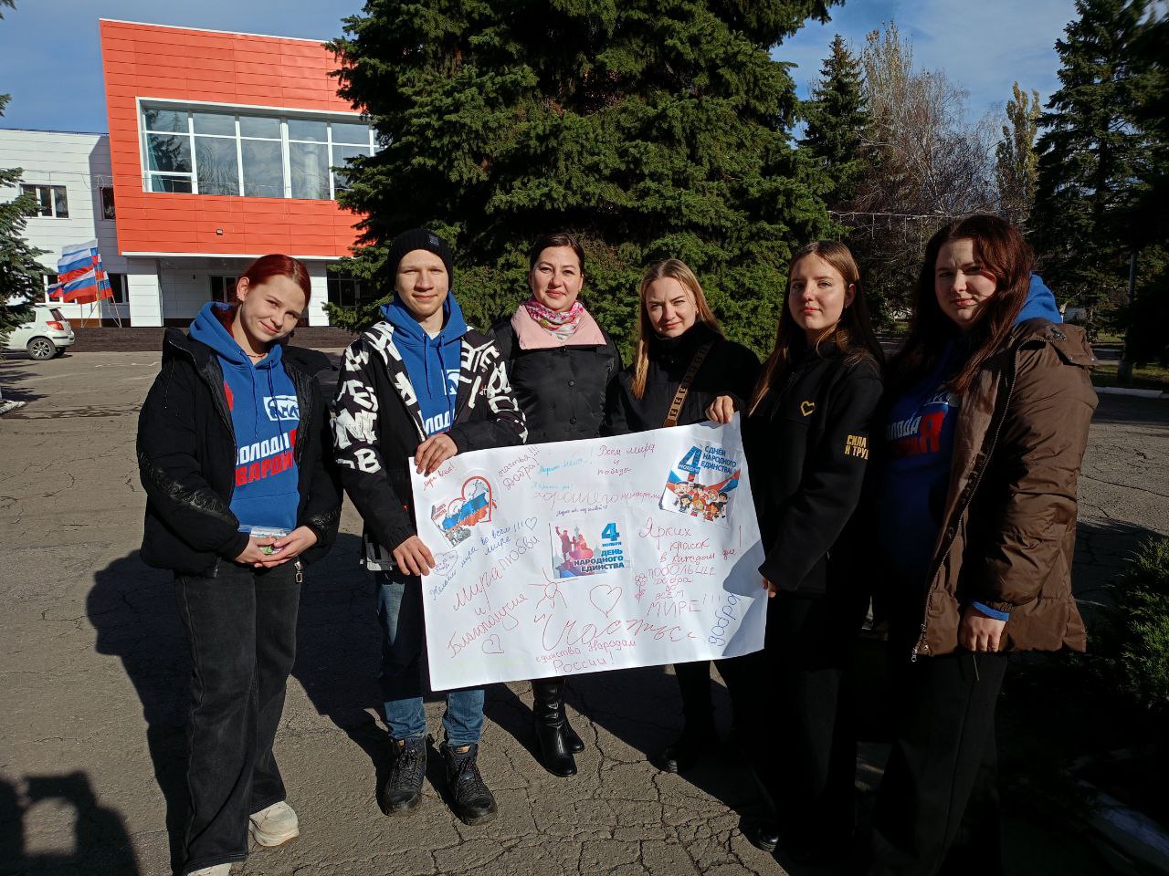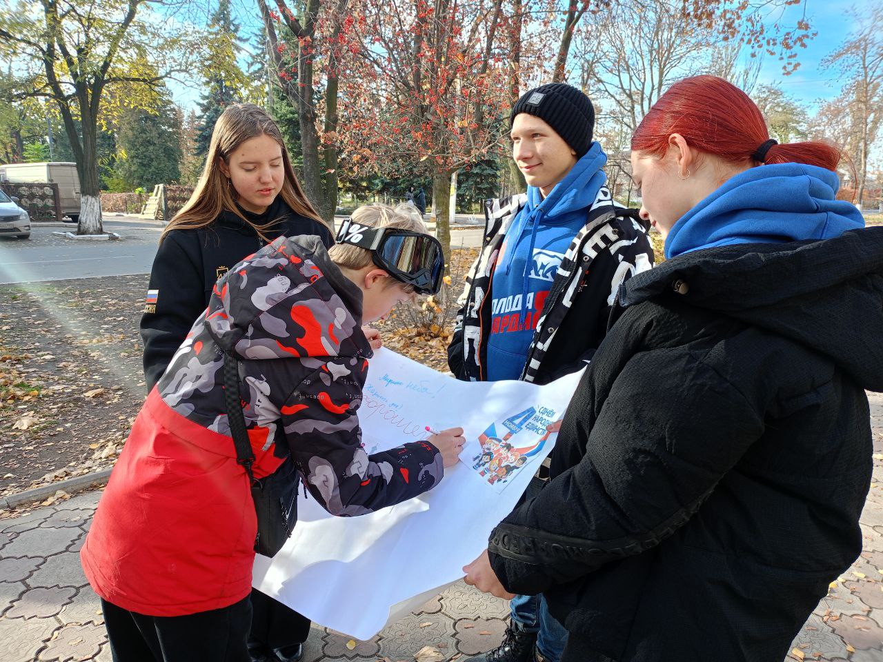 В рамках Всероссийской акции «Россия — семья семей», активисты Ждановского штаба МР и МГЕР ДНР вместе с жителями города написали пожелания на плакате своему городу.