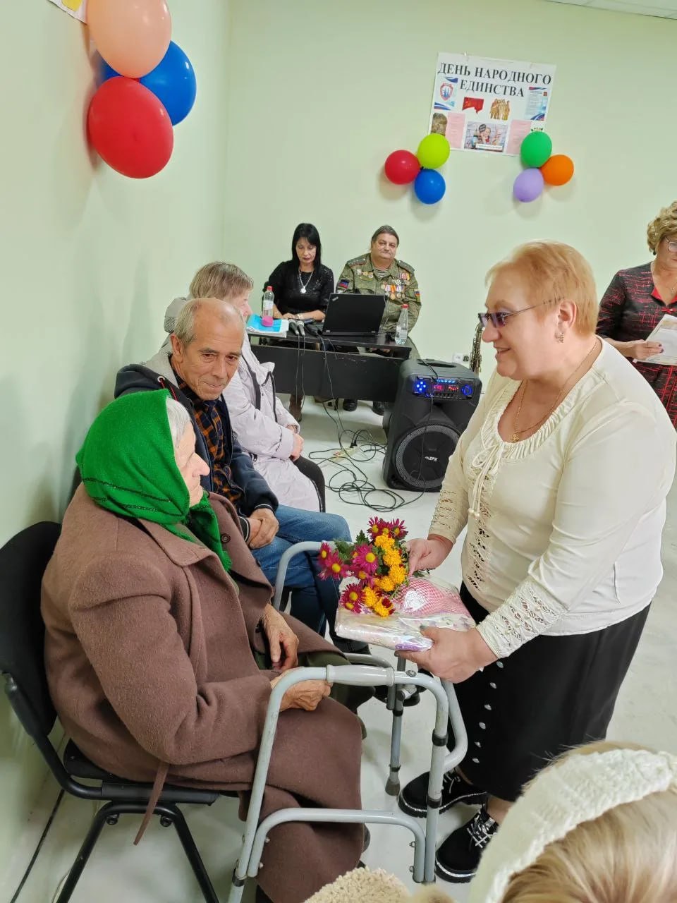 Незабываемым подарком для жителей стало выступление ансамбля «Донбасский характер» под руководством В.О. Чачанидзе. Солистки порадовали всех своими голосами, а знакомые песни подхватывал весь зал, пускаясь в пляс.