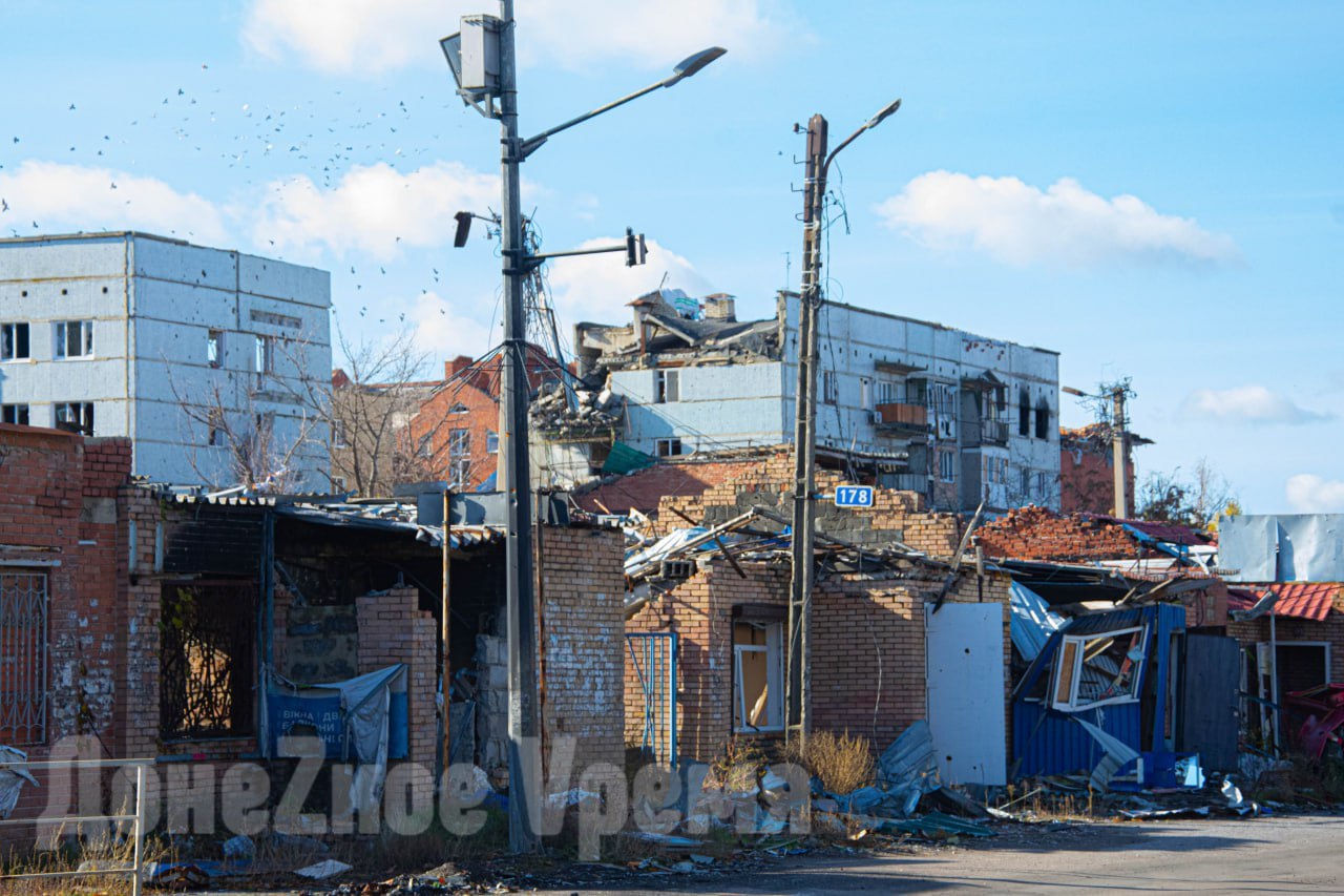 Сейчас в Курахово тихо, но инфраструктура серьезно разрушена. Во многих многоквартирных и частных домах зияют дыры в крышах, повреждены окна и балконы. В городе пока нет электричества и отопления, но жители не уезжают – готовятся к зиме.