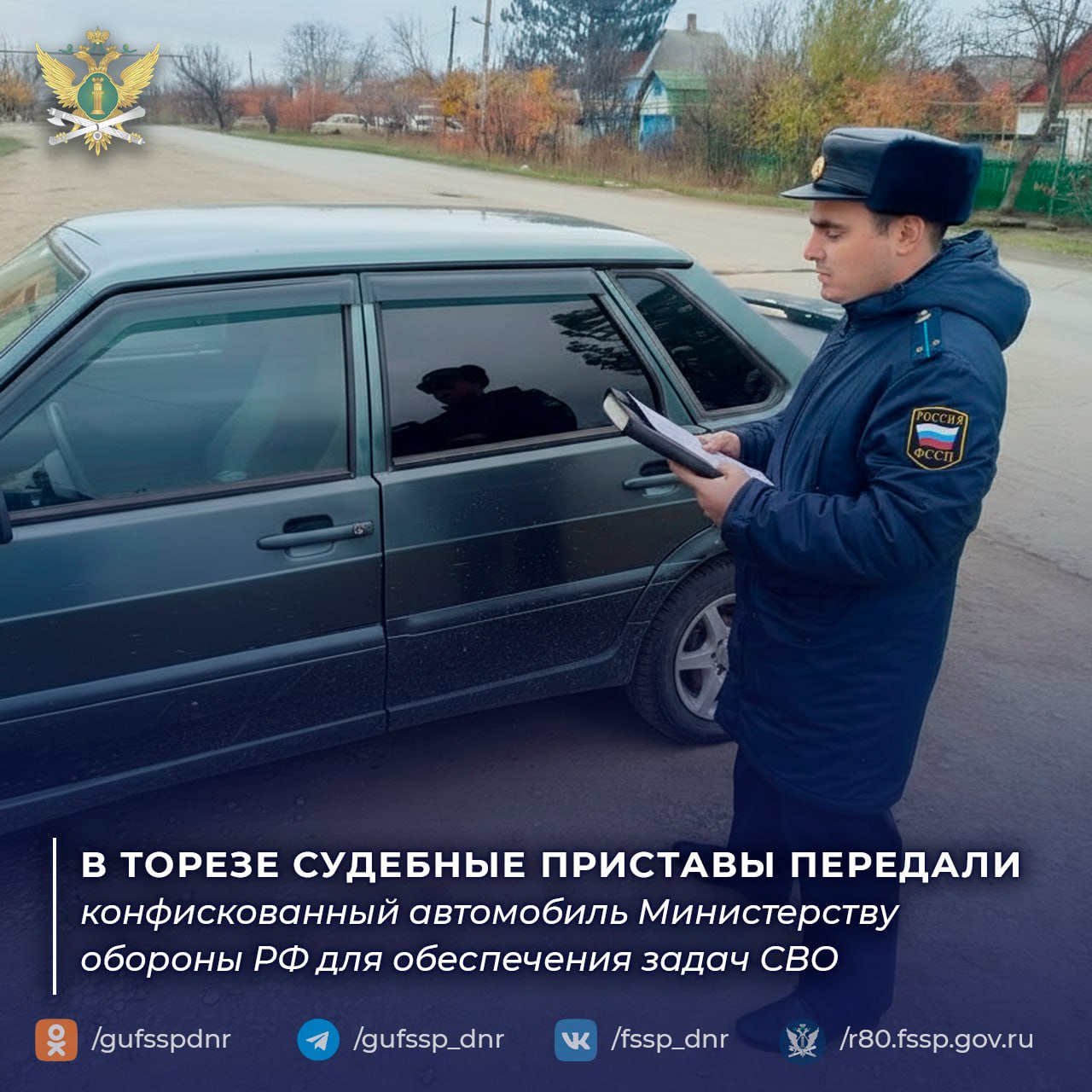 В отделении судебных приставов по городу Торезу ГУФССП России по Донецкой Народной Республике завершено исполнительное производство о конфискации транспортного средства у гражданина, признанного виновным в совершении преступления, предусмотренного частью 1 статьи 264.1 Уголовного кодекса Российской Федерации. Изъятый автомобиль передан для использования в ходе специальной военной операции.