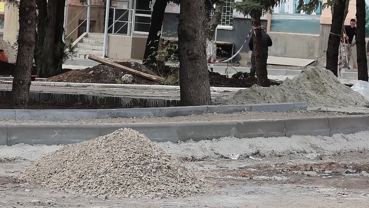 Строители восстанавливают асфальтовое покрытие, укладывают брусчатку и благоустраивают территорию.