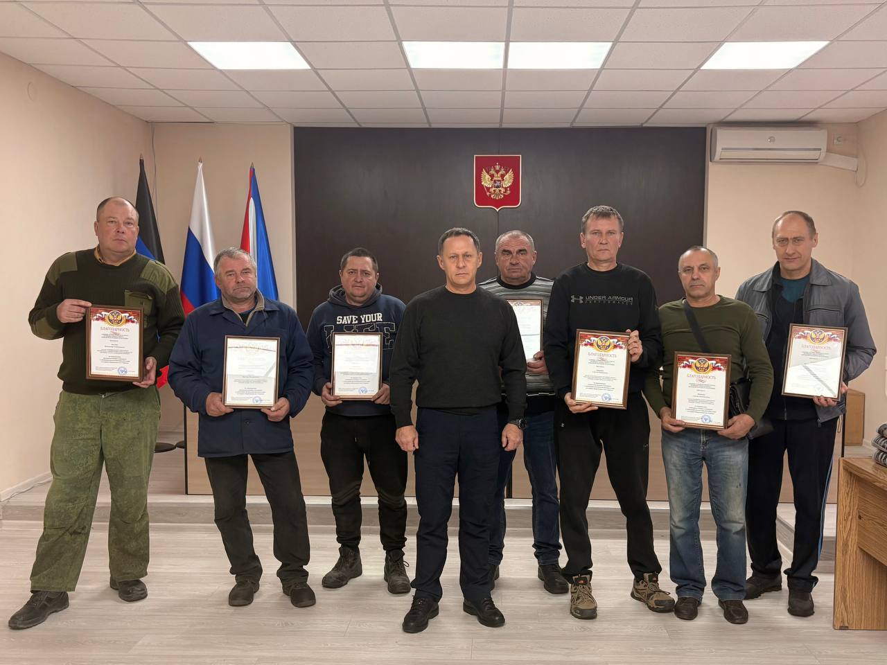Вручил благодарности и от души поблагодарил наших коммунальщиков – сотрудников Ясиноватского жилищно-эксплуатационного комбината и «Эко-Комфорт-Сервиса» за помощь в ликвидации последствий обстрела города, который произошел ранним воскресным утром 26 октября.