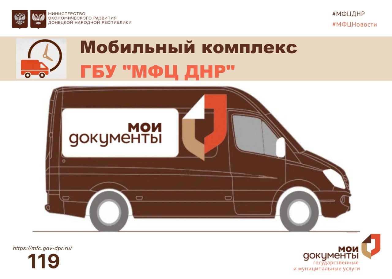 С графиком выездного обслуживания можно ознакомиться на официальном портале ГБУ "МФЦ ДНР".
