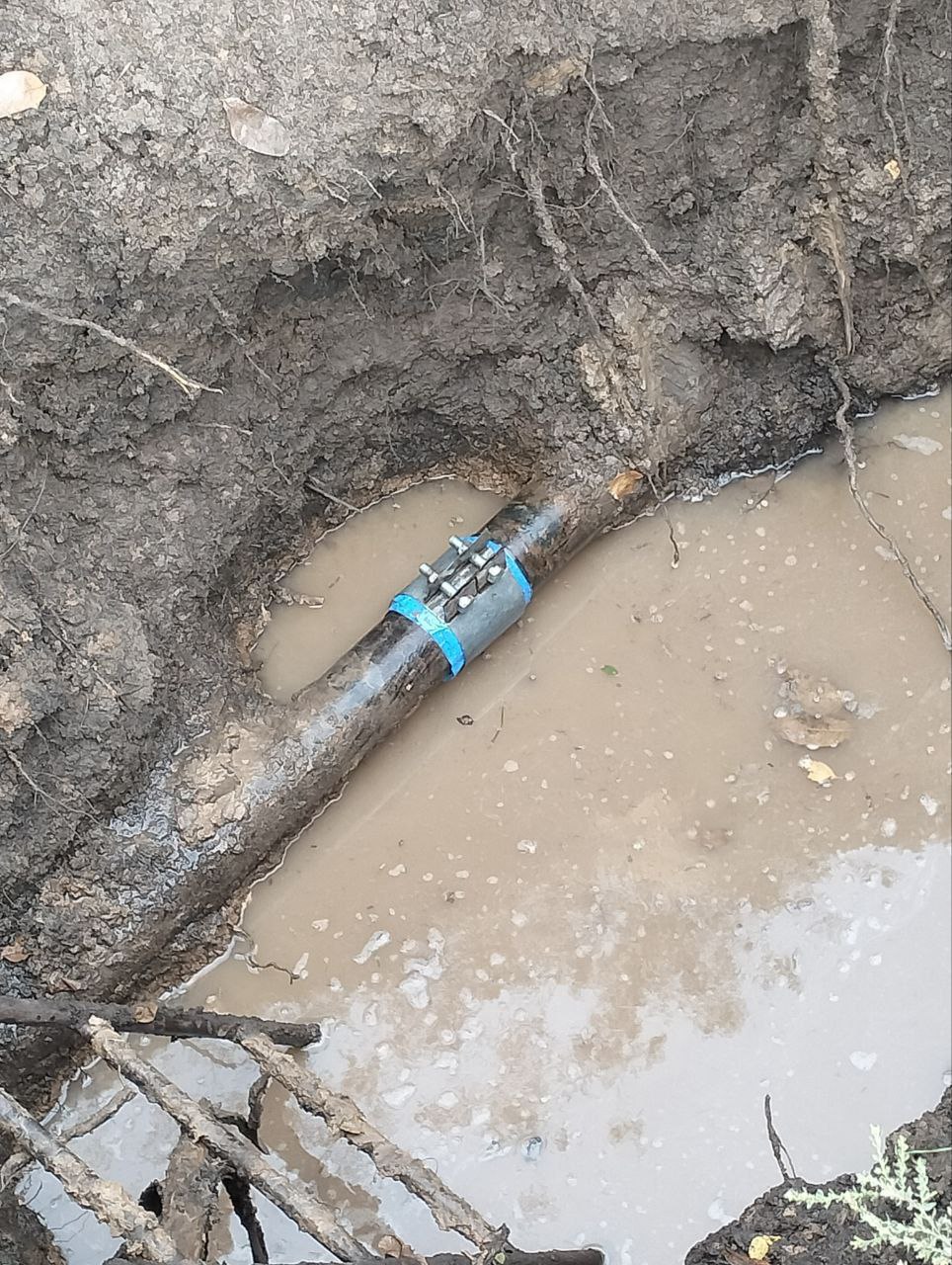 выполнены работы по восстановлению 2-х участков водопроводной сети путем установки хомута D-150mm по ул. Октябрьская и с. Самсоново;