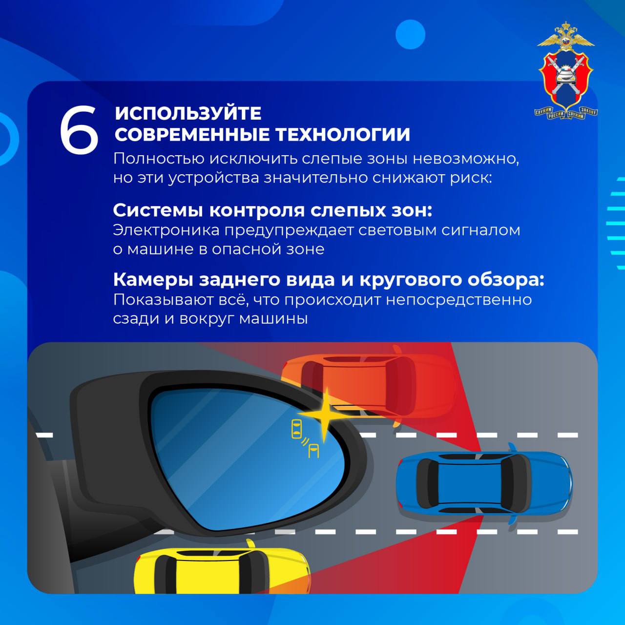 В слепых зонах могут незаметно оказаться пешеходы, велосипедисты или автомобили.