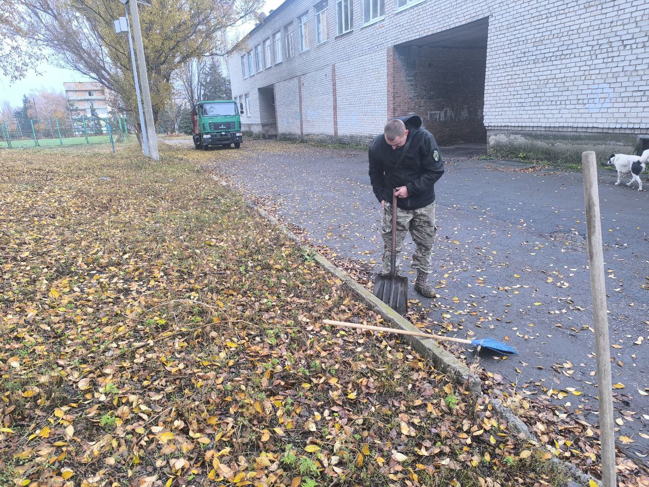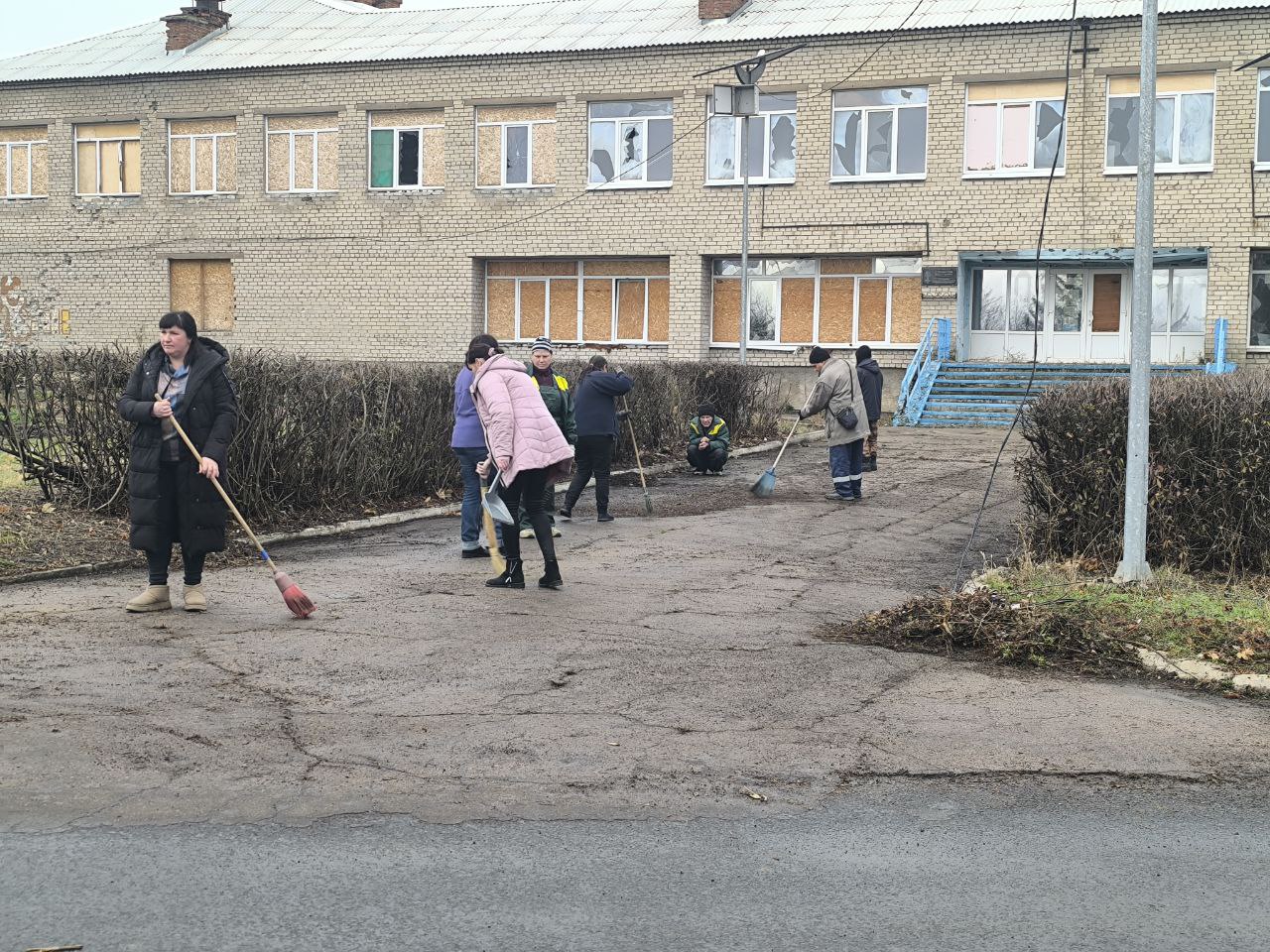 Совместными усилиями привели в порядок прилегающую территорию к школе, очистив её от опавшей листвы и веток