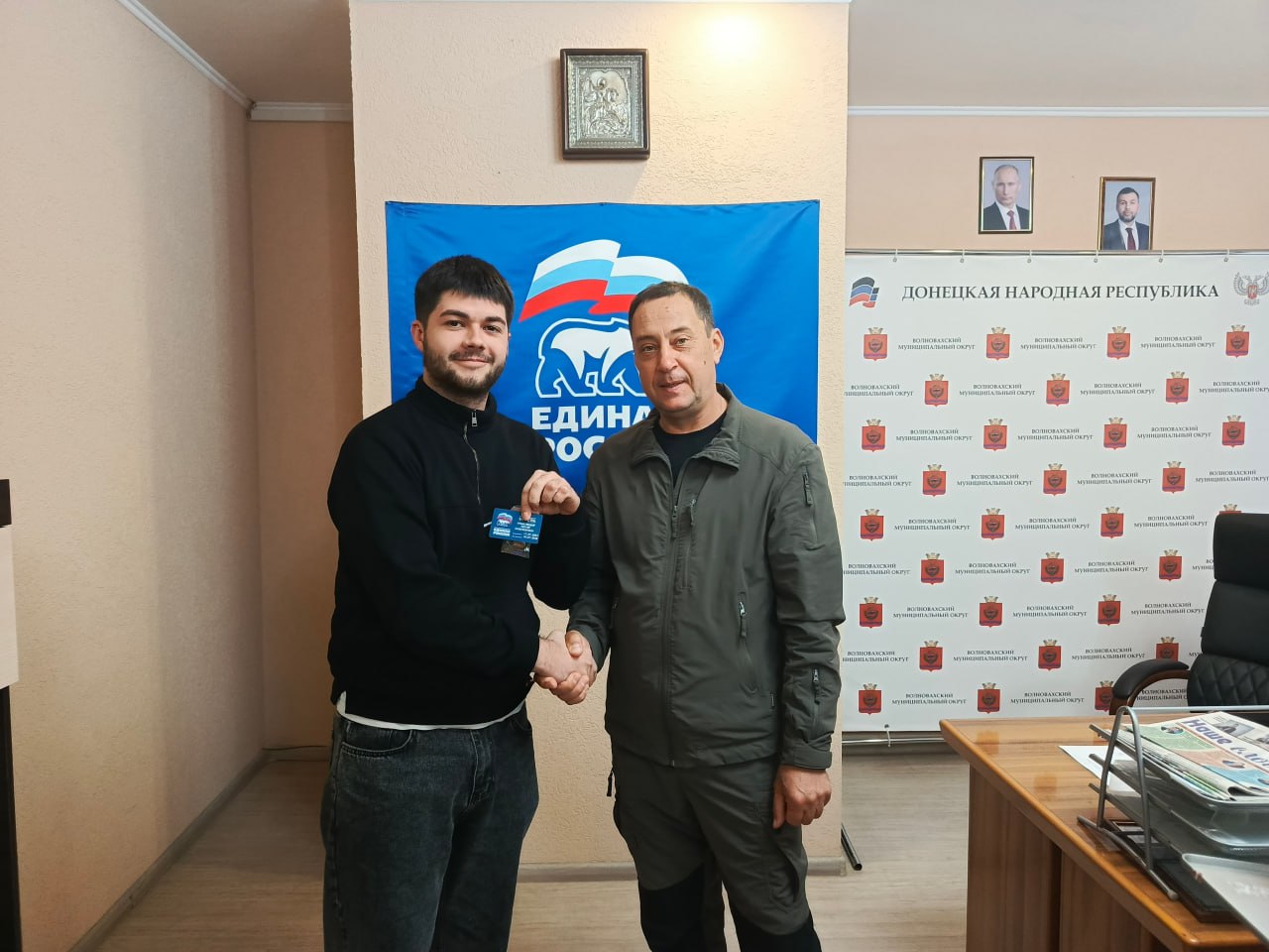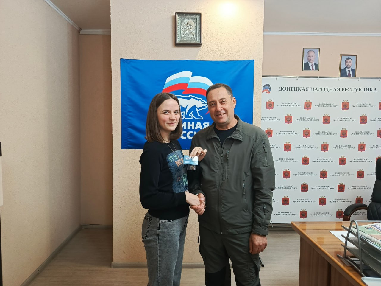 Сегодня вручил партийные билеты и значки новым членам Волновахского местного отделения Партии "Единая Россия"
