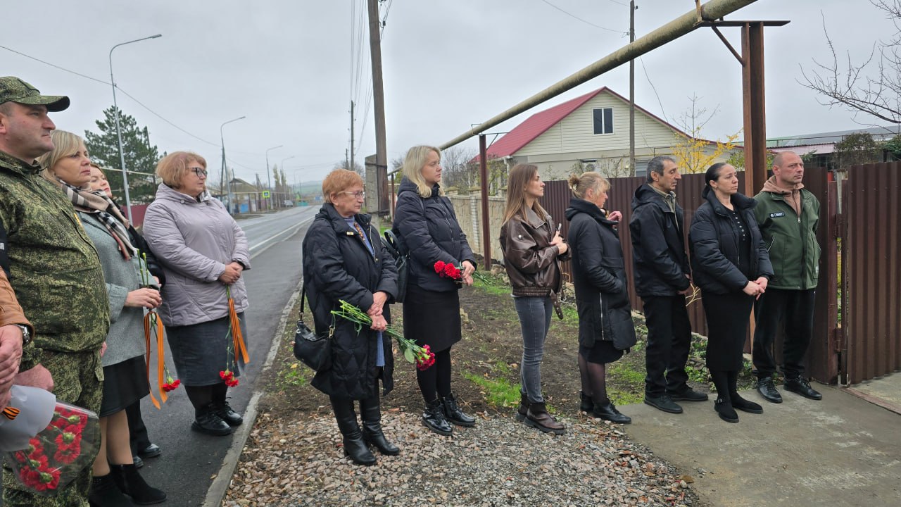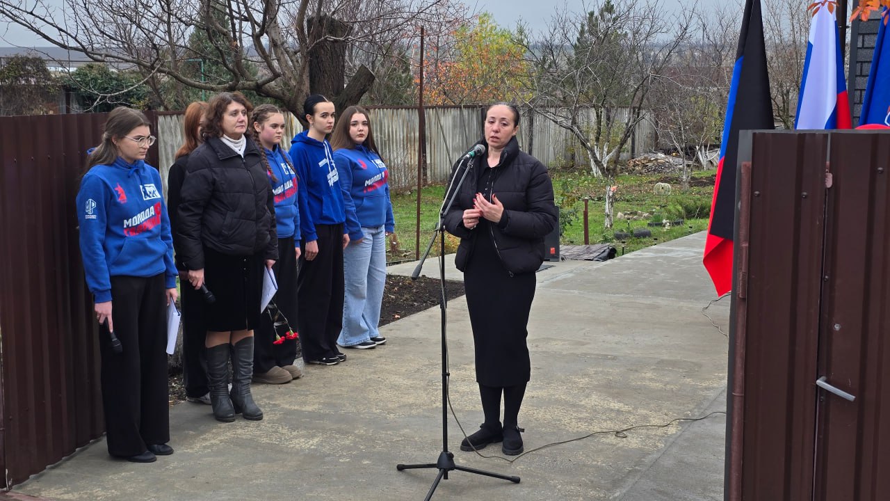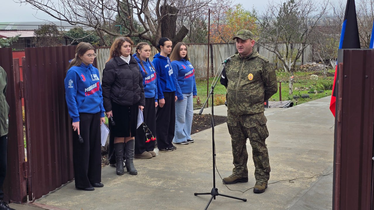Вместе с заместителем председателя Старобешевского муниципального совета Алексеем Черкашиным, Депутатом Народного Совета ДНР Павлом Минаковым, заместителем военного коменданта 8 военной комендатуры, участником СВО старшим лейтенантом Сергеем Гуровым, официальным координатором Фонда «Защитники Отечества» Ольгой Туник, классным руководителем Донецкого колледжа культуры и искусств Галиной Погорелой, родными и близкими Героя принял участие в торжественной линейке.