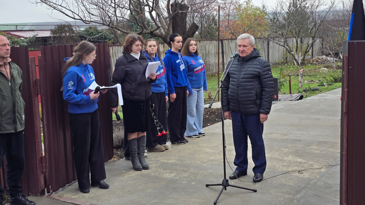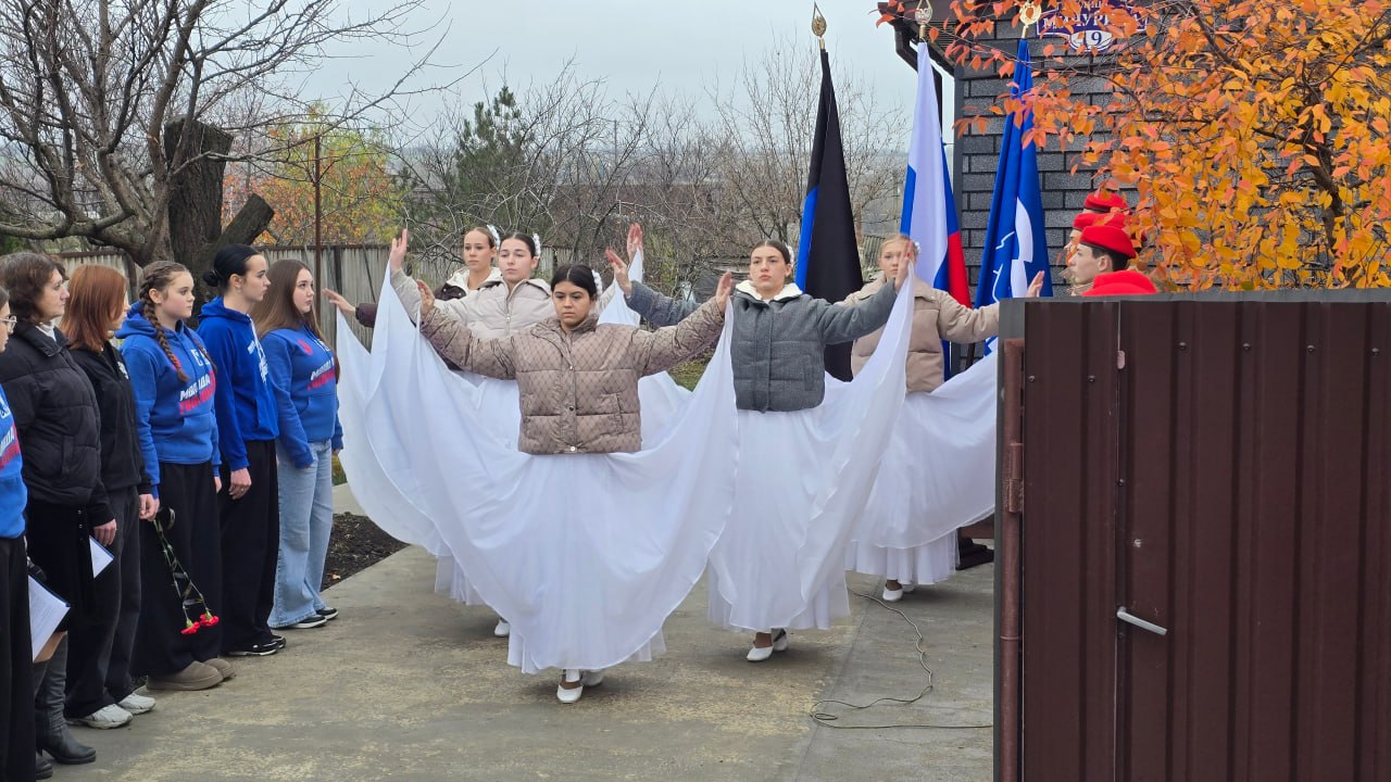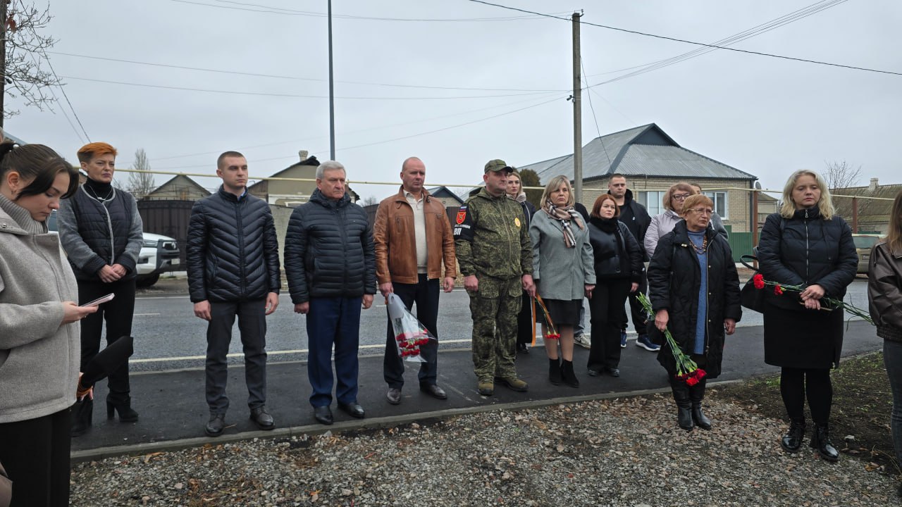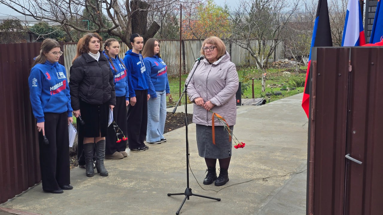 Вместе с заместителем председателя Старобешевского муниципального совета Алексеем Черкашиным, Депутатом Народного Совета ДНР Павлом Минаковым, заместителем военного коменданта 8 военной комендатуры, участником СВО старшим лейтенантом Сергеем Гуровым, официальным координатором Фонда «Защитники Отечества» Ольгой Туник, классным руководителем Донецкого колледжа культуры и искусств Галиной Погорелой, родными и близкими Героя принял участие в торжественной линейке.