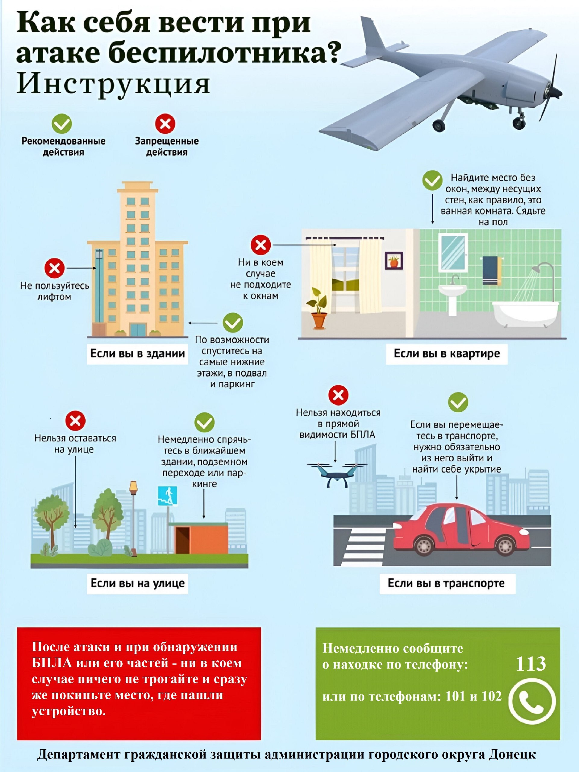 Просим вас ознакомиться с инструкцией по действиям при атаке беспилотного летательного аппарата (БПЛА)