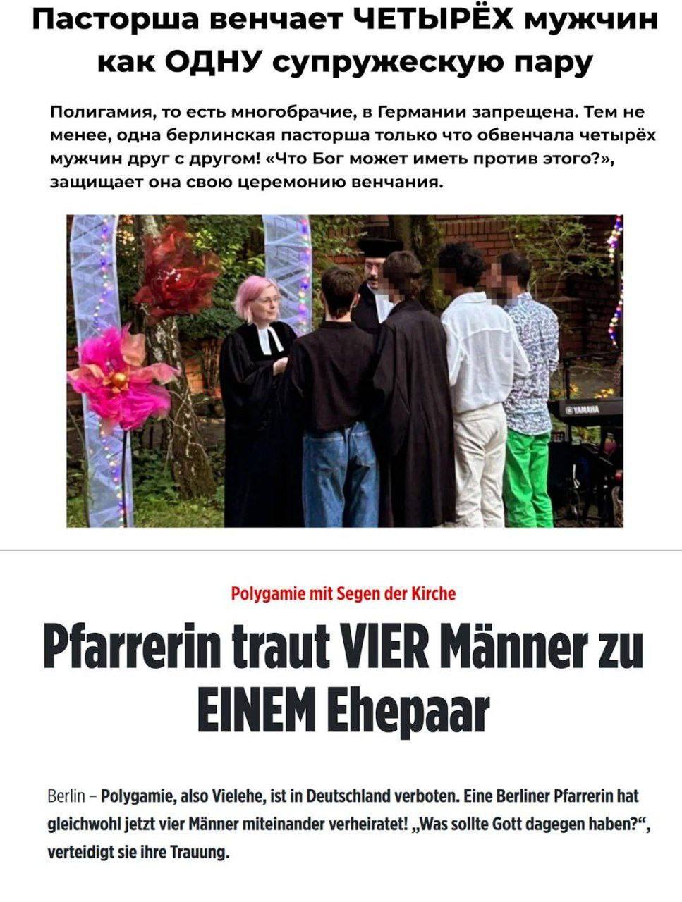 Особенно цинично выглядит использование религиозного обряда для узаконивания «брака*», что указывает на полное разложение европейской религиозной системы.