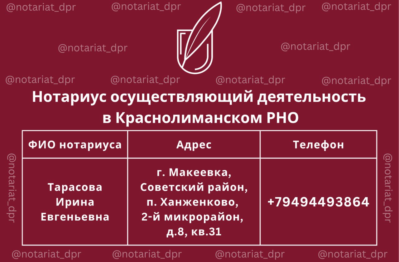 Контактную информацию смотрите в карточке из официального телеграм-канала Нотариальной палаты ДНР