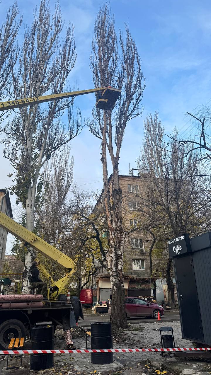 Сегодня, 13 ноября, сотрудниками МУП АГОД ДНР "ЗЕЛЕНОЕ СТРОИТЕЛЬСТВО Г.ДОНЕЦКА" проведены работы по санитарной обрезке и распилу аварийных деревьев в Ленинском внутригородском районе г. Донецка