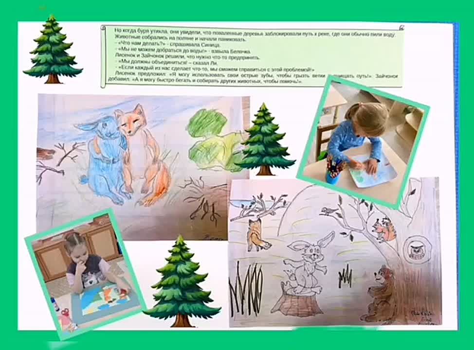 Дети нарисовали рисунки и сделали аппликации к тексту сказки, написанному искусственным интеллектом.