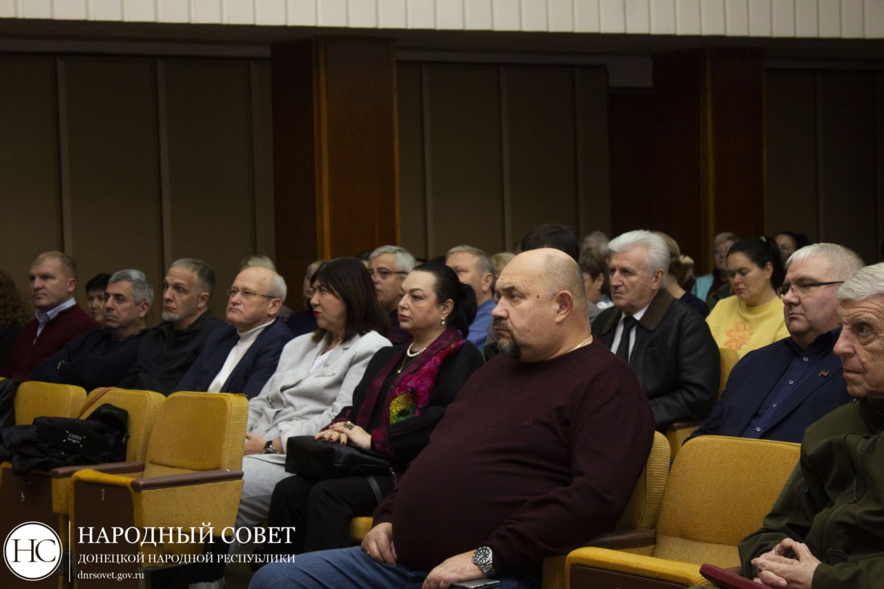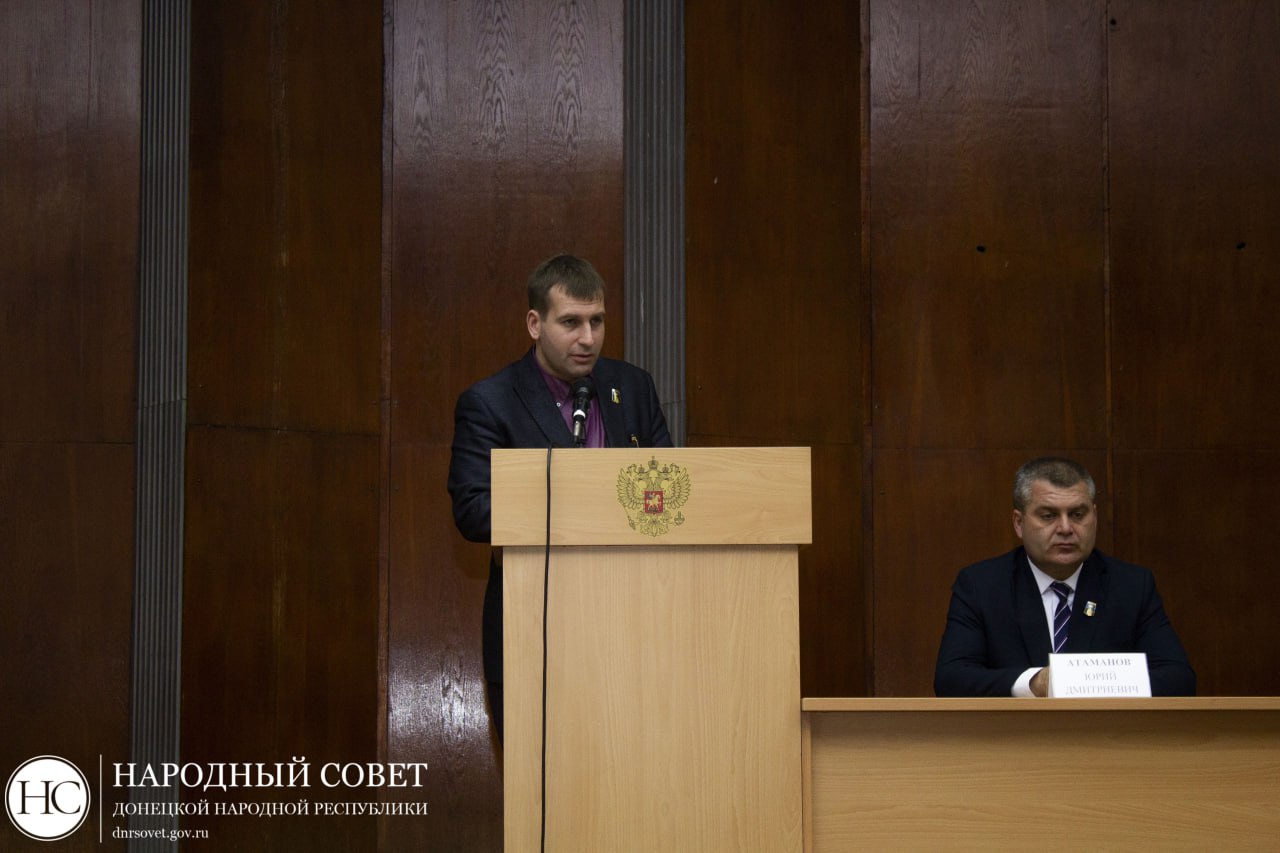 Заместитель Председателя Народного Совета ДНР Андрей Крамар зачитал приветственный адрес Председателя Народного Совета ДНР Константина Кузьмина: