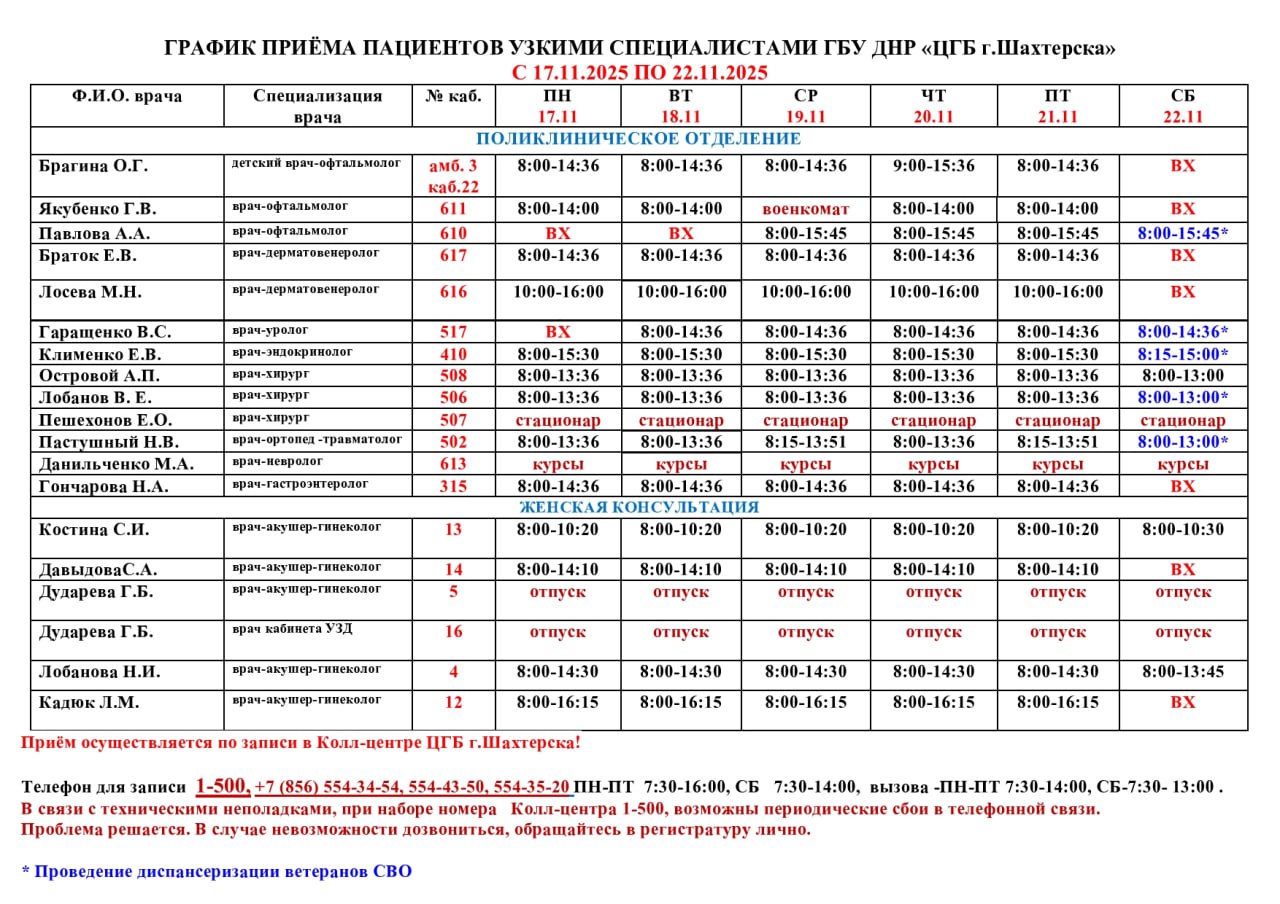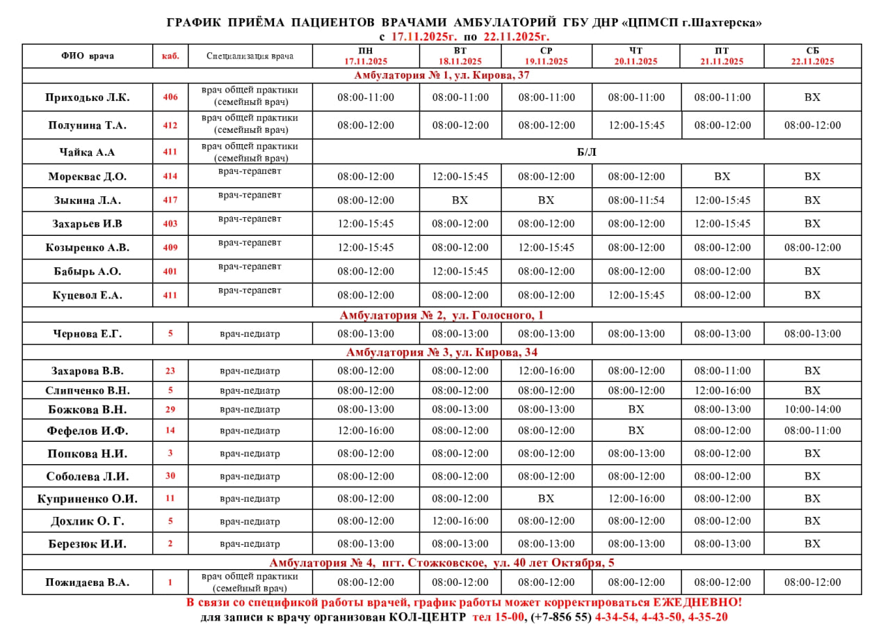 Внимание Информация о графике приемов врачами и врачами-педиатрами