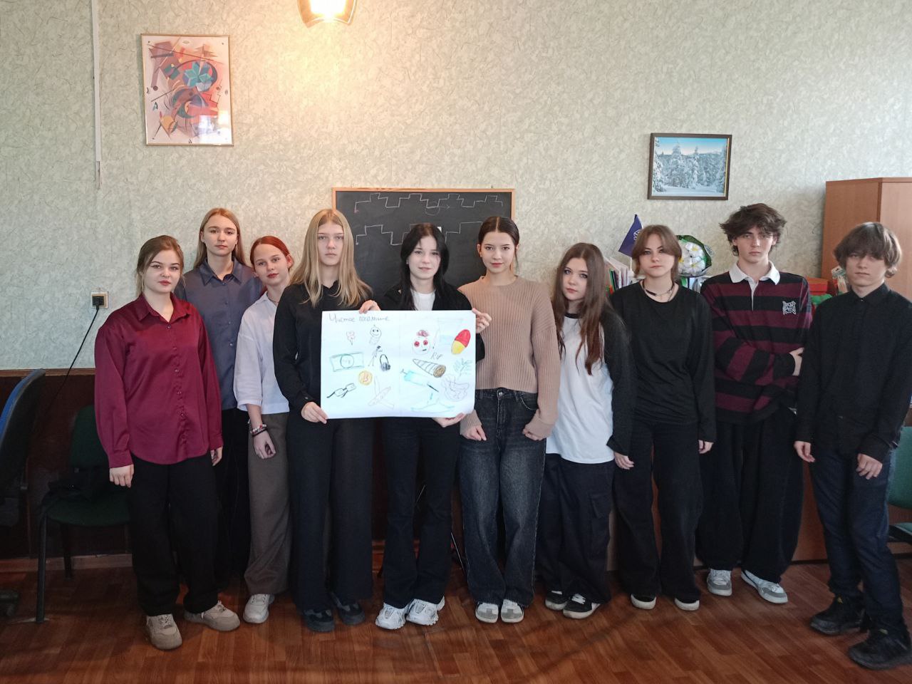 Школьники приняли участие в акции, создав плакат. На нём они наглядно изобразили две стороны жизни: мрачное и бесперспективное существование при зависимости, и яркое, полное возможностей — с путешествиями, развитием и радостью от каждого момента — для тех, кто выбирает здоровый путь.