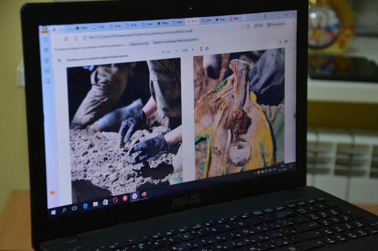 Сотрудница «Центра «Долг», боец поискового отряда «ШтАрм» Карина Баландина также рассказала об особенностях полевой корреспонденции во время проведения Вахт Памяти и поисково-разведывательных работ.