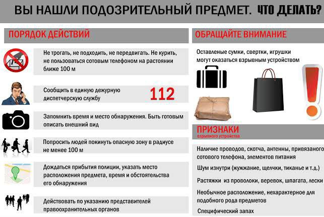 если нашли подозрительный предмет, НЕ ПОДХОДИТЬ К НЕМУ И НЕ ТРОГАТЬ!