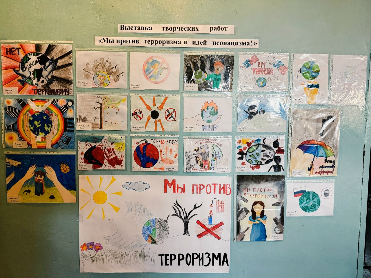 В рамках Недели активно использовались интерактивные формы работы:игры, викторины, обсуждения, онлайн-анкетирование. Это позволило вовлечь учащихся в процесс обучения и сделать информацию более доступной и запоминающейся.Творческие конкурсы, такие как конкурс рисунков "Мы против терроризма и идей неонацизма!", стали площадкой для выражения детских мыслей и чувств по актуальным проблемам.