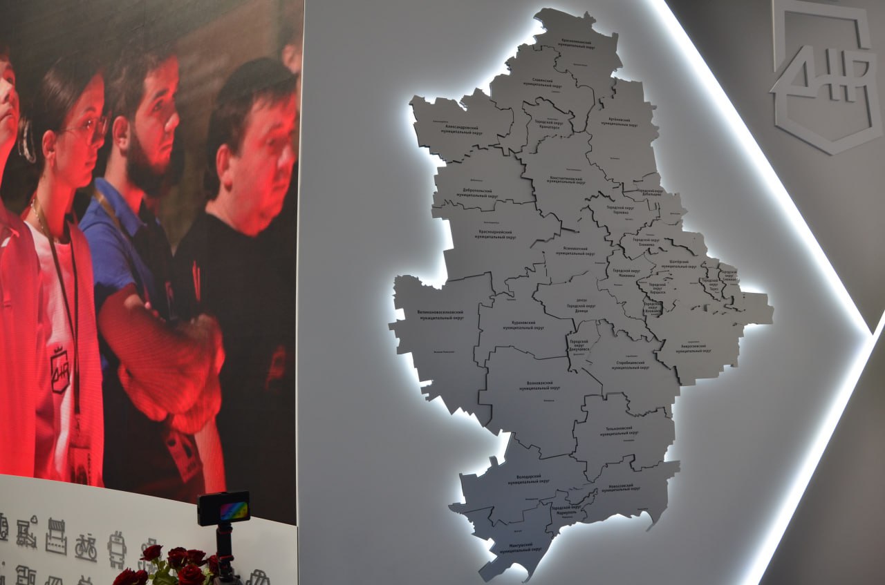 Донбасс в деталях. На мультимедийных экранах – жизнь региона глазами тех, кто его восстанавливает. Современные предприятия, обновлённые магистрали и новые автобусы на маршрутах – мы показываем реальные результаты: